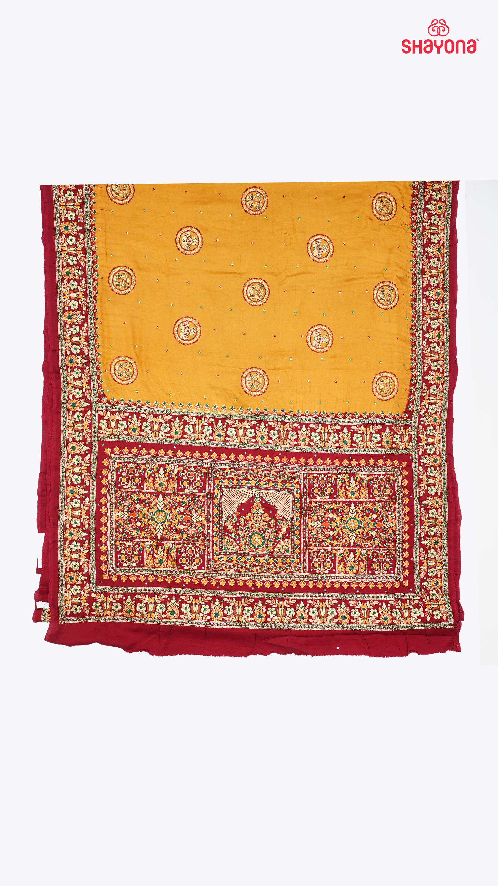 Mustard & Maroon Pure Gajji Silk Gharchola Saree