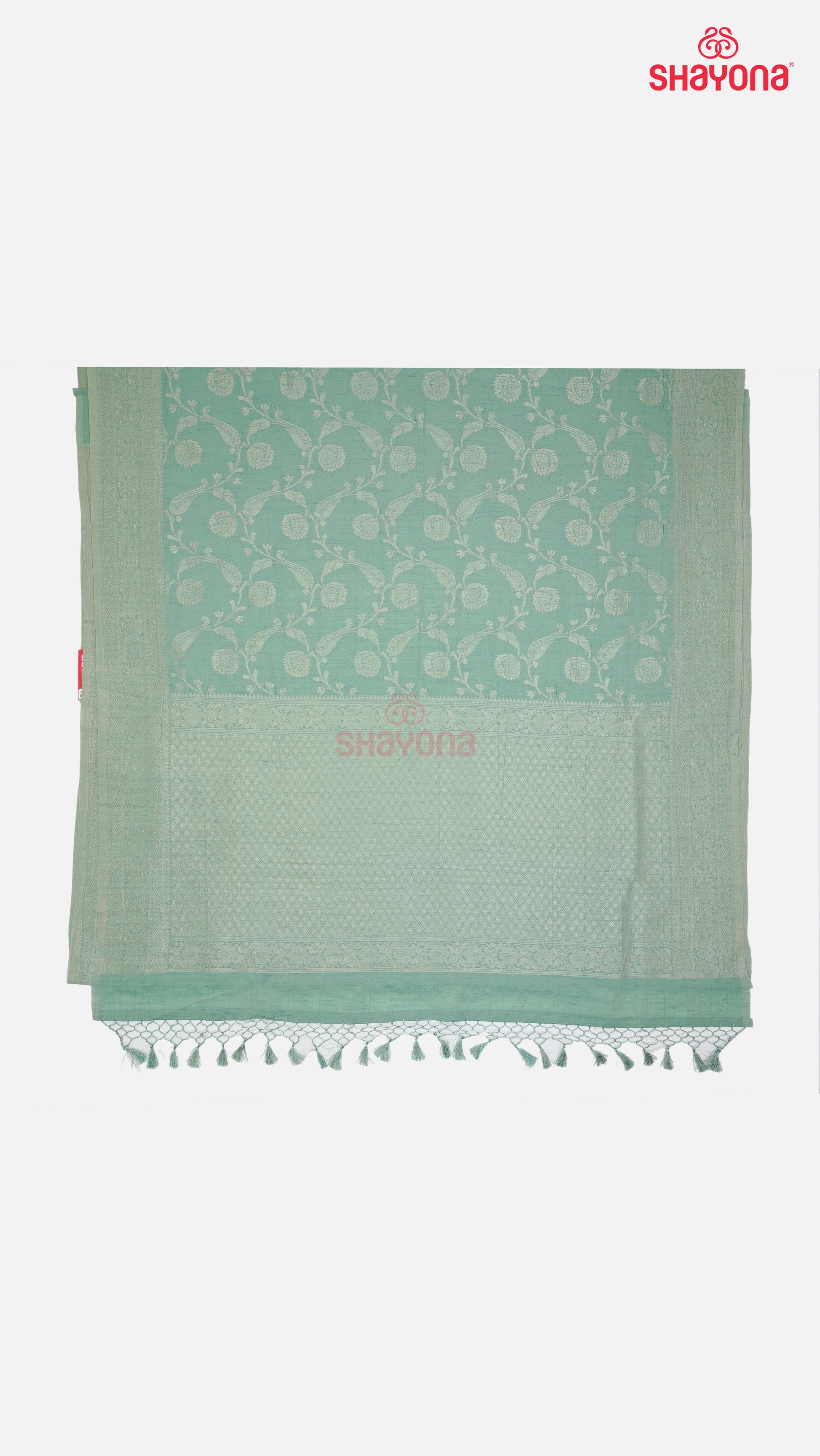 "Flow in Grace – Aqua Banarasi Saree with Jaal Weave & Heritage Pallav Elegance"