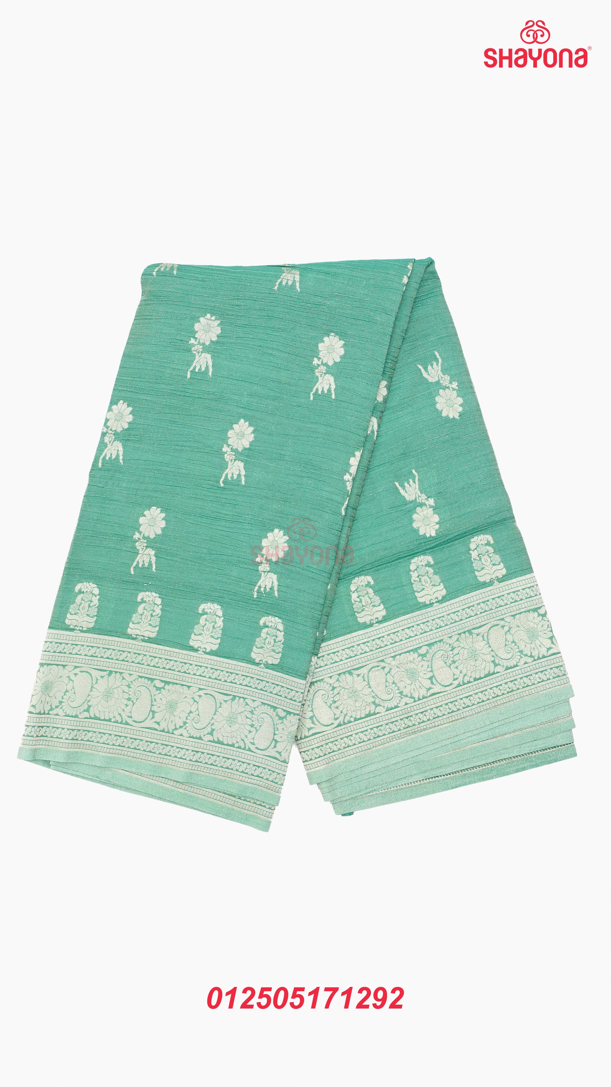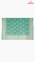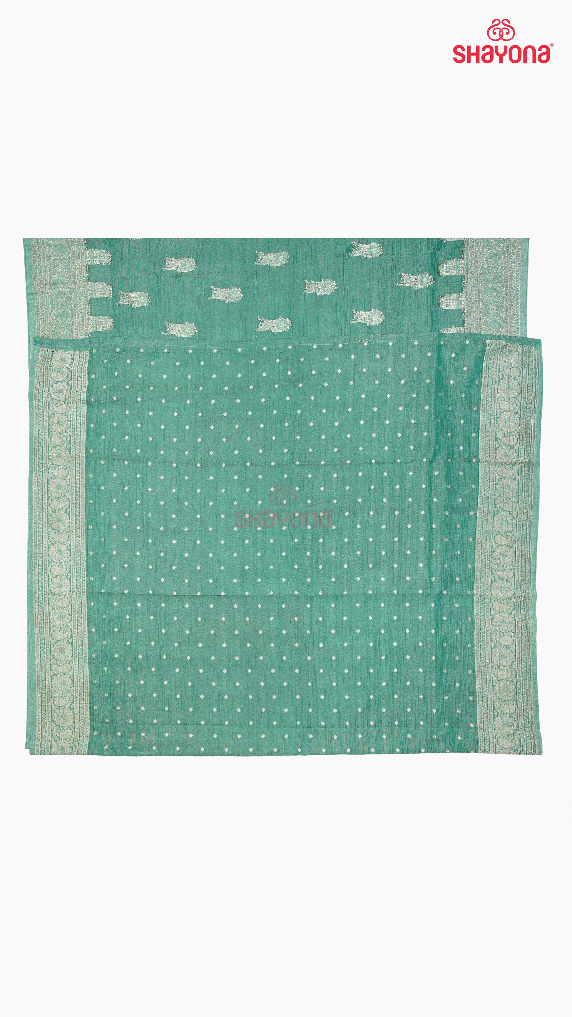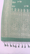 Dark Cadet Blue Banarasi Georgette Khaddi Print Saree with Butta Gala, Jaal Nakshi Border & Heavy Pallav