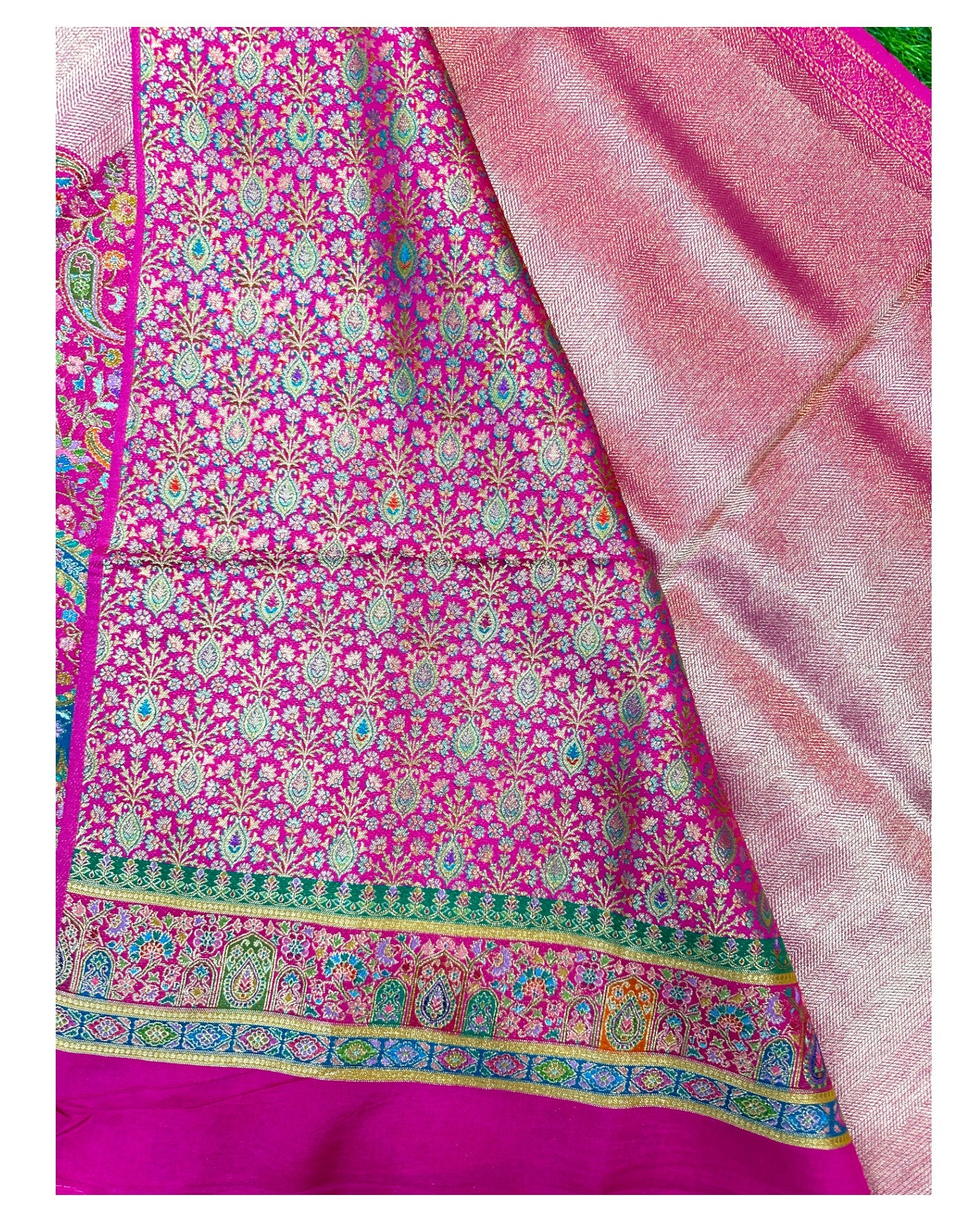 • Dark pink pashmina silk saree