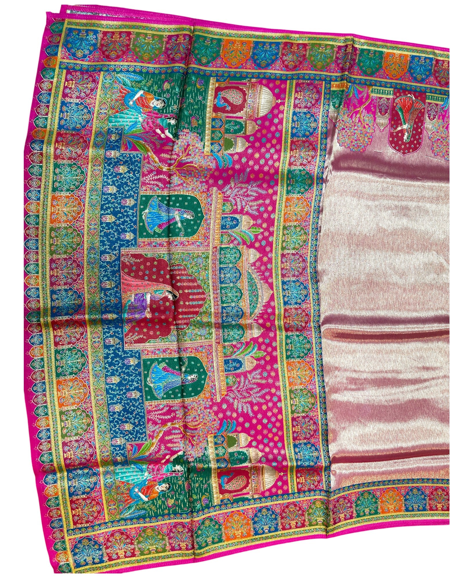 "Dark Pink Radiance in Tissue Silk – Where Heritage Meets Elegance"
