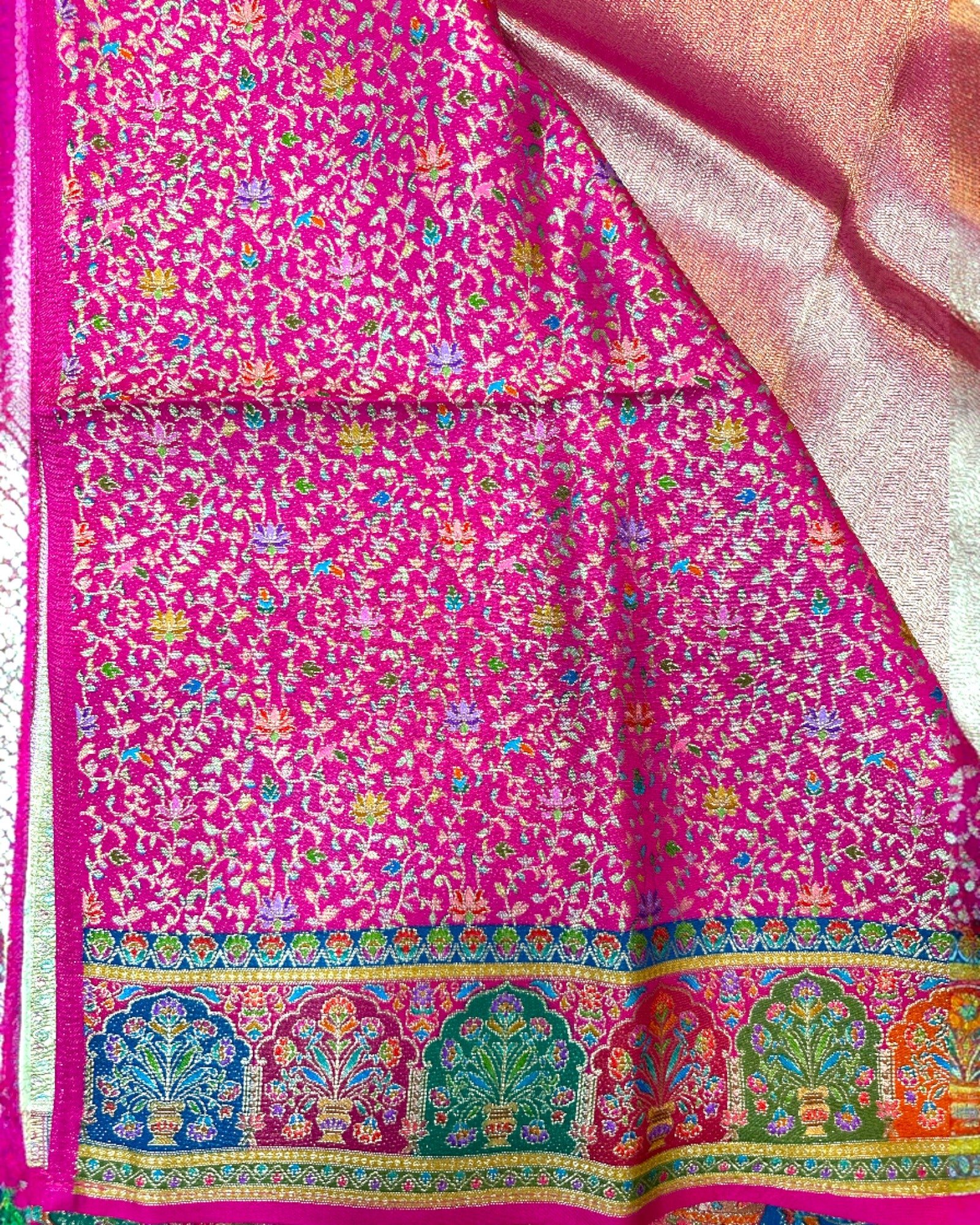 "Dark Pink Tissue Pashmina Silk Saree – Royal Weaves for Timeless Celebrations"
