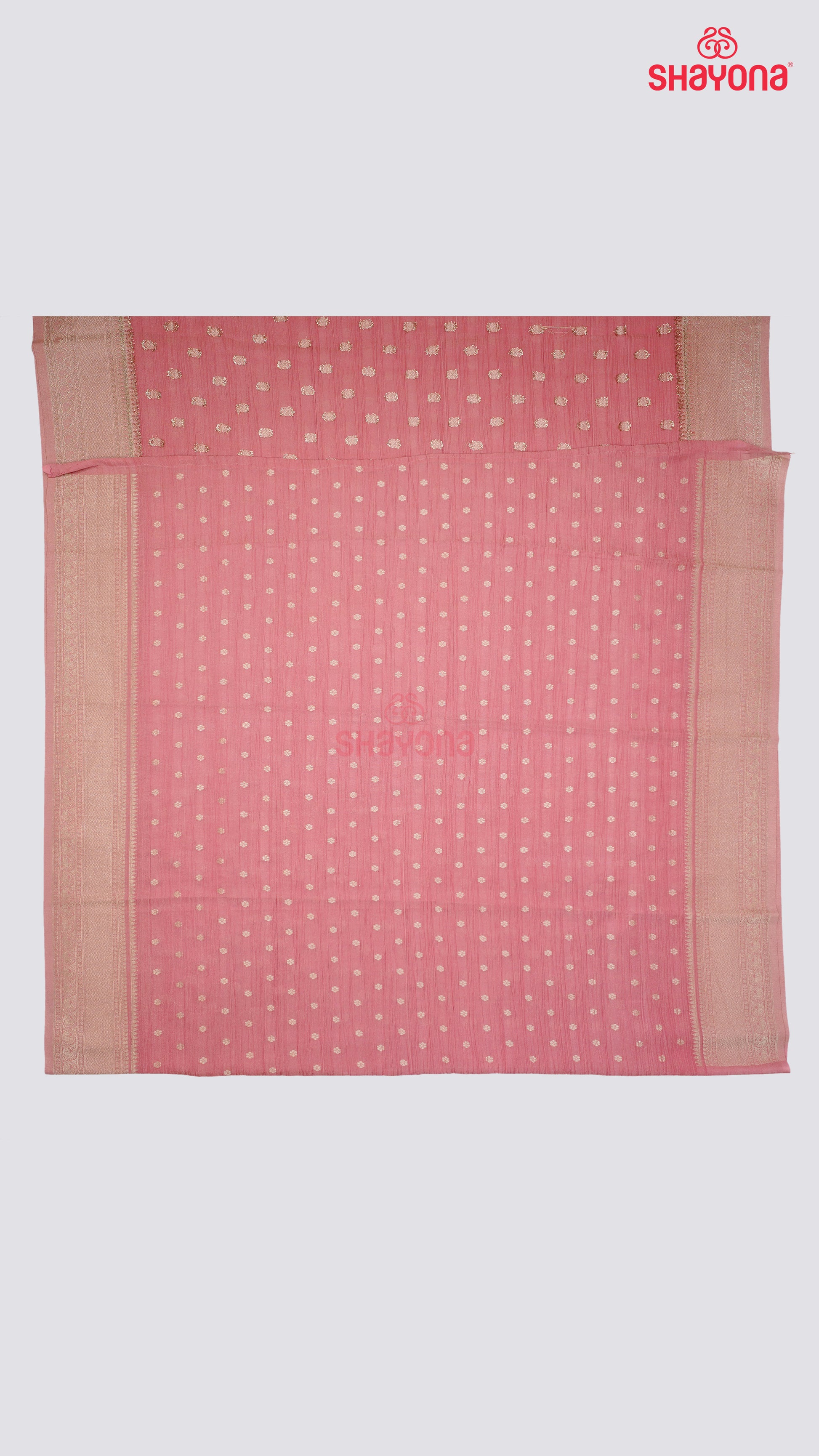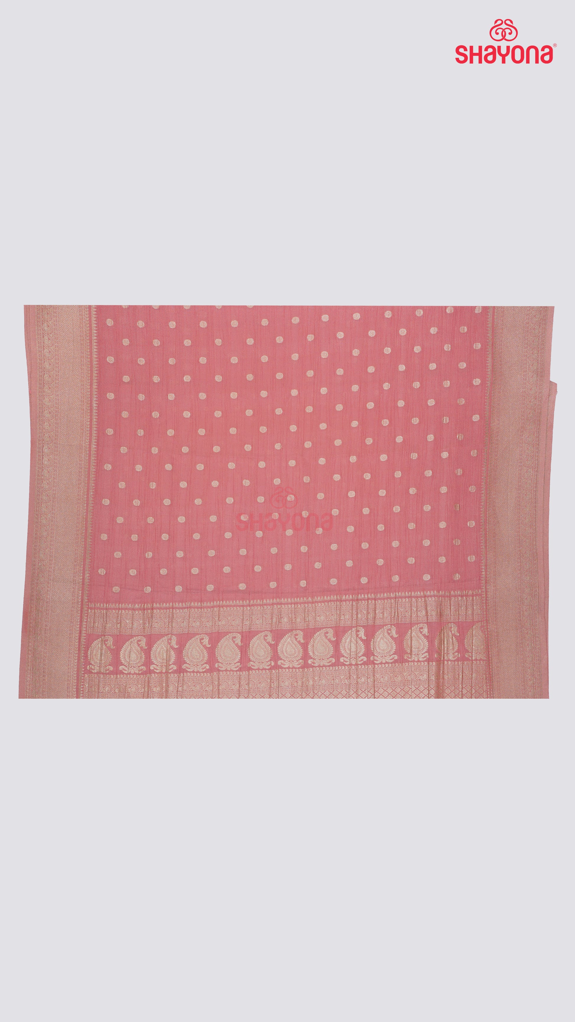 Dark Pink Banarasi Georgette Khaddi Print Saree with All Over Butti Gala, Jaal Nakshi Border & Heavy Pallav
