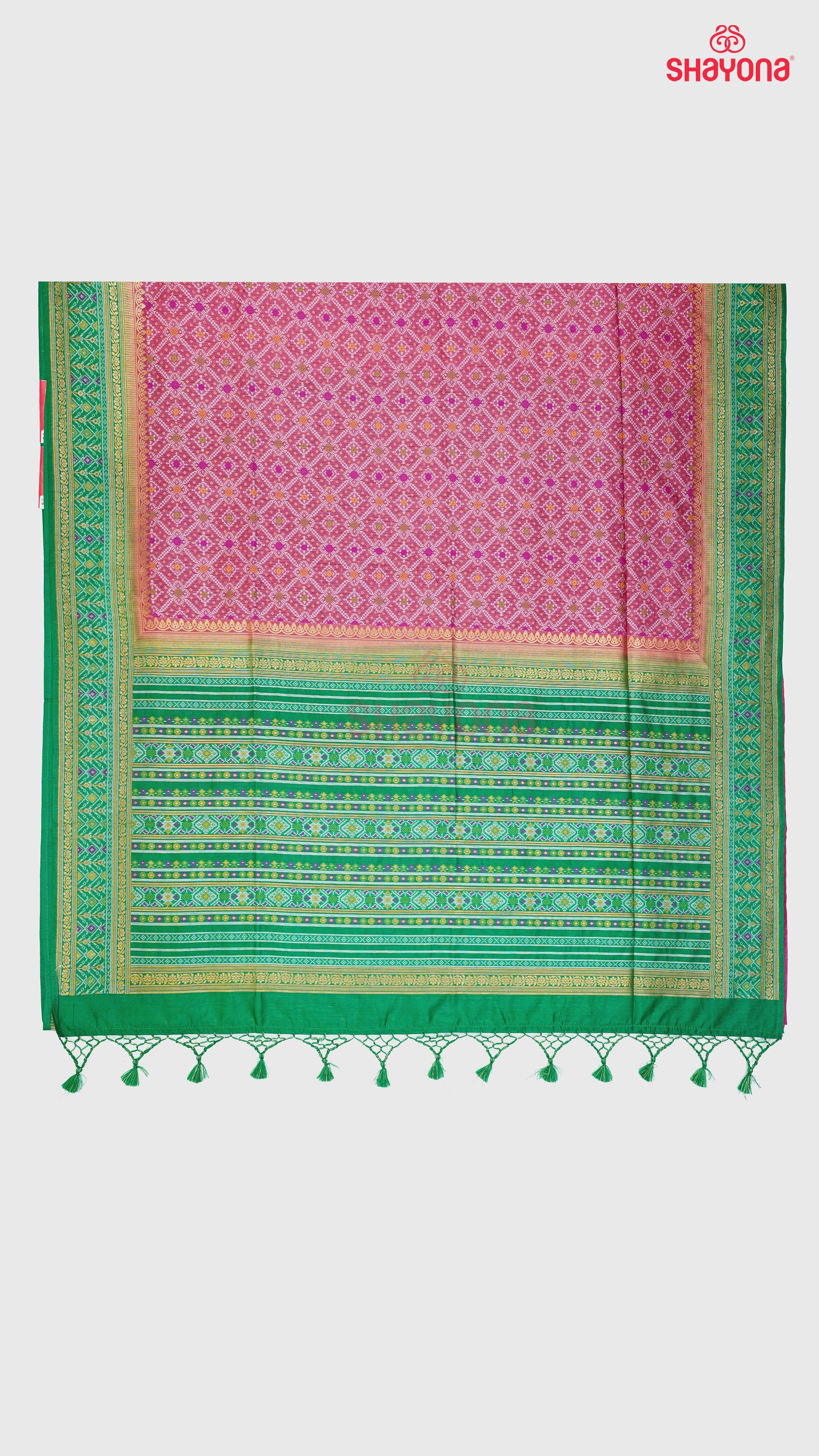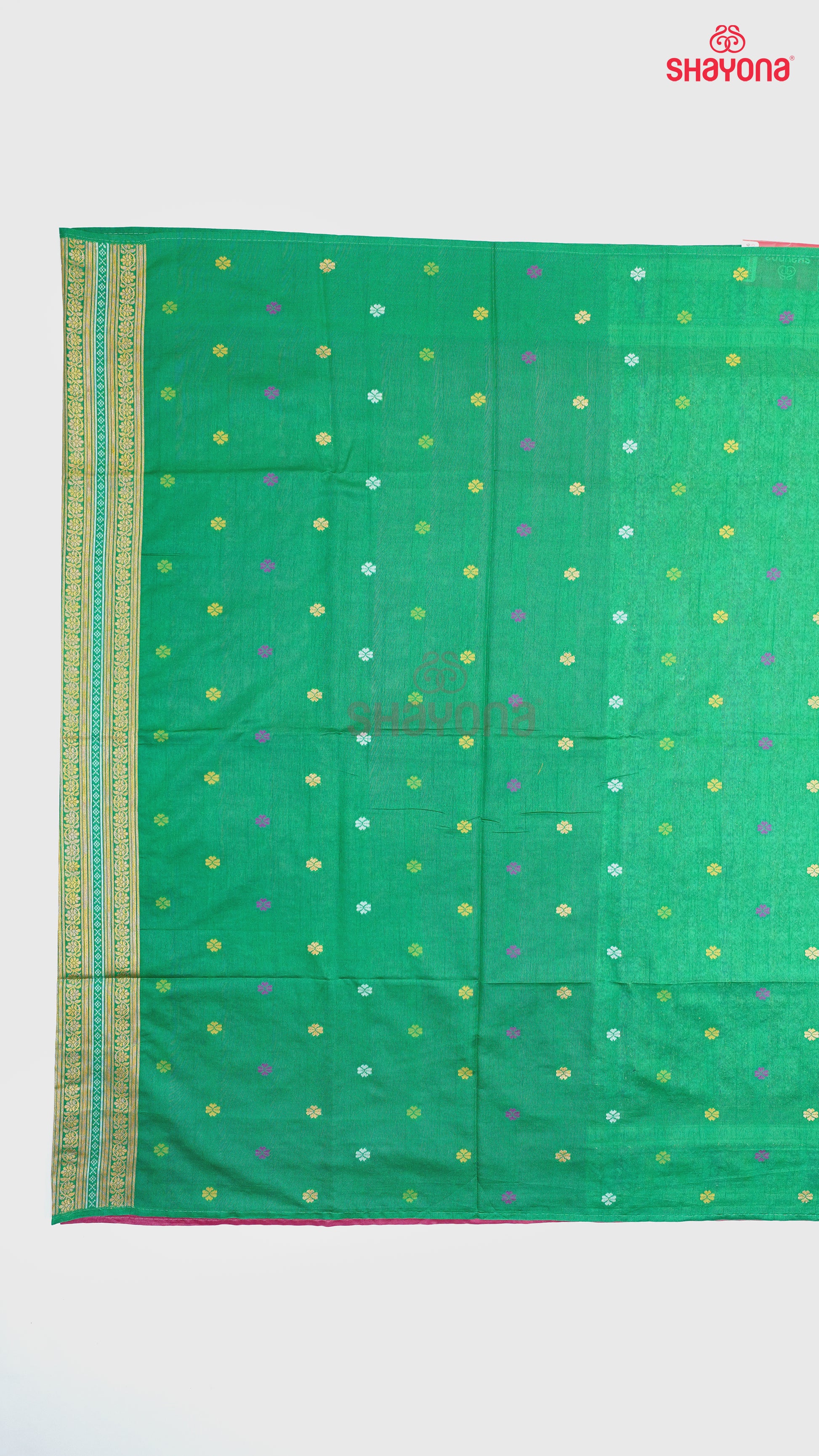 Dark Pink & Sea Green Ghicha Art Silk Saree – A Heritage of Vibrance