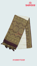 Ivory & Wine Banarasi Soft Silk Saree with Golden Butta Jaal & Heavy Nakshi Pallav