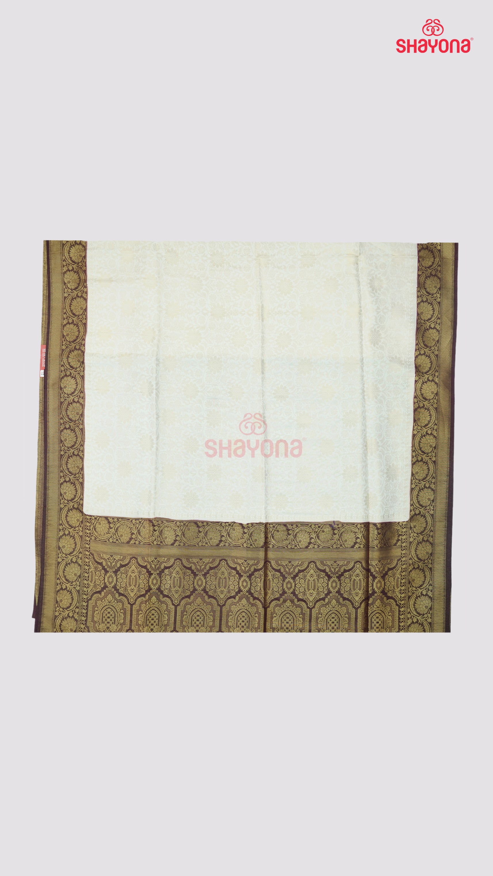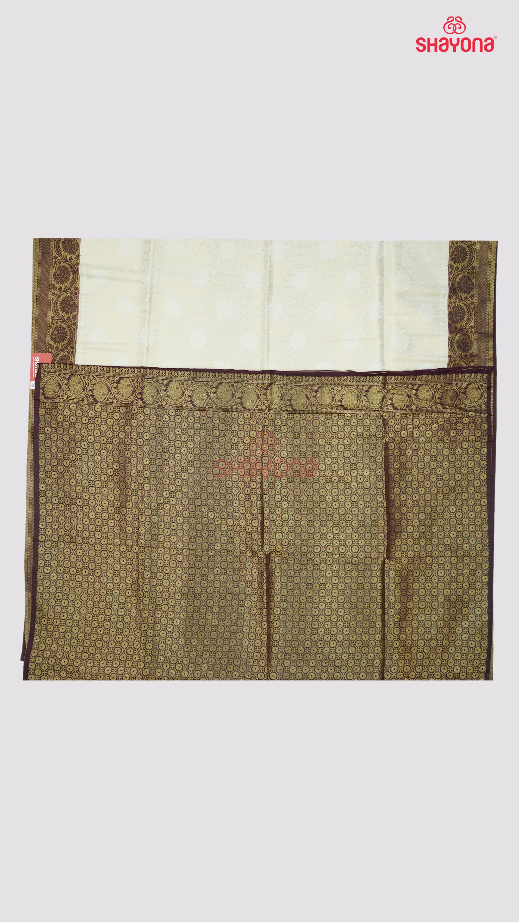 Ivory and wine Banarasi silk saree