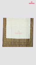 The deep wine border, adorned with classic nakshi motifs, perfectly contrasts the serene ivory body, while the heavy pallav adds grandeur and opulence — making it a perfect pick for weddings, festive occasions, and cultural celebrations.