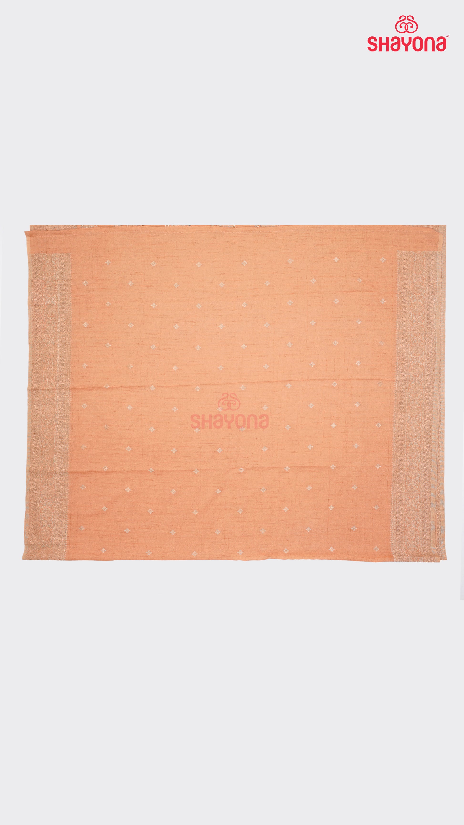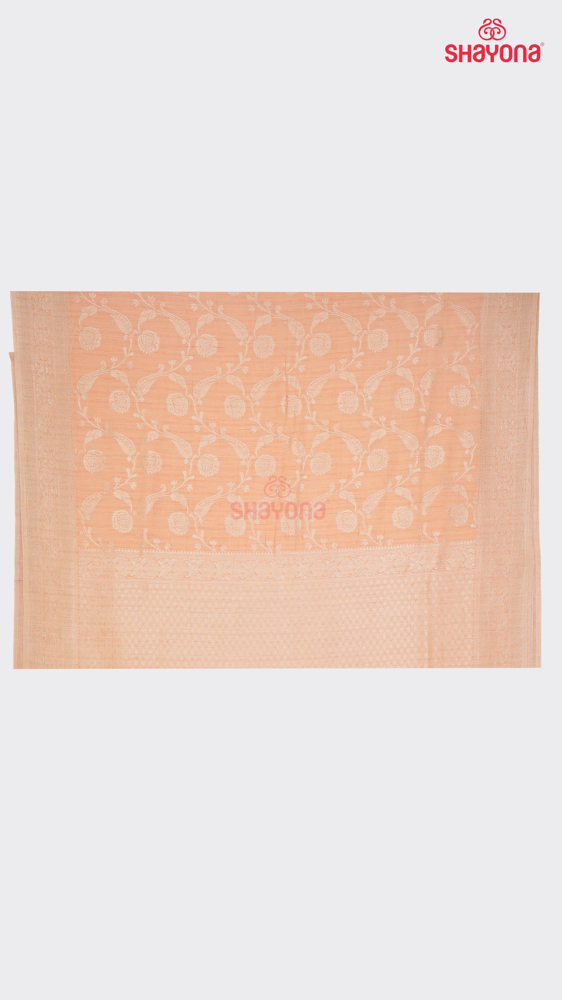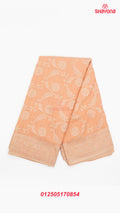 Step into elegance with this Light Peach coloured Banarasi Georgette Khaddi Print Saree, a true celebration of grace and heritage. Crafted from soft silk georgette, the saree is adorned with intricately woven all-over jaal patterns that create a luxurious texture and timeless appeal.