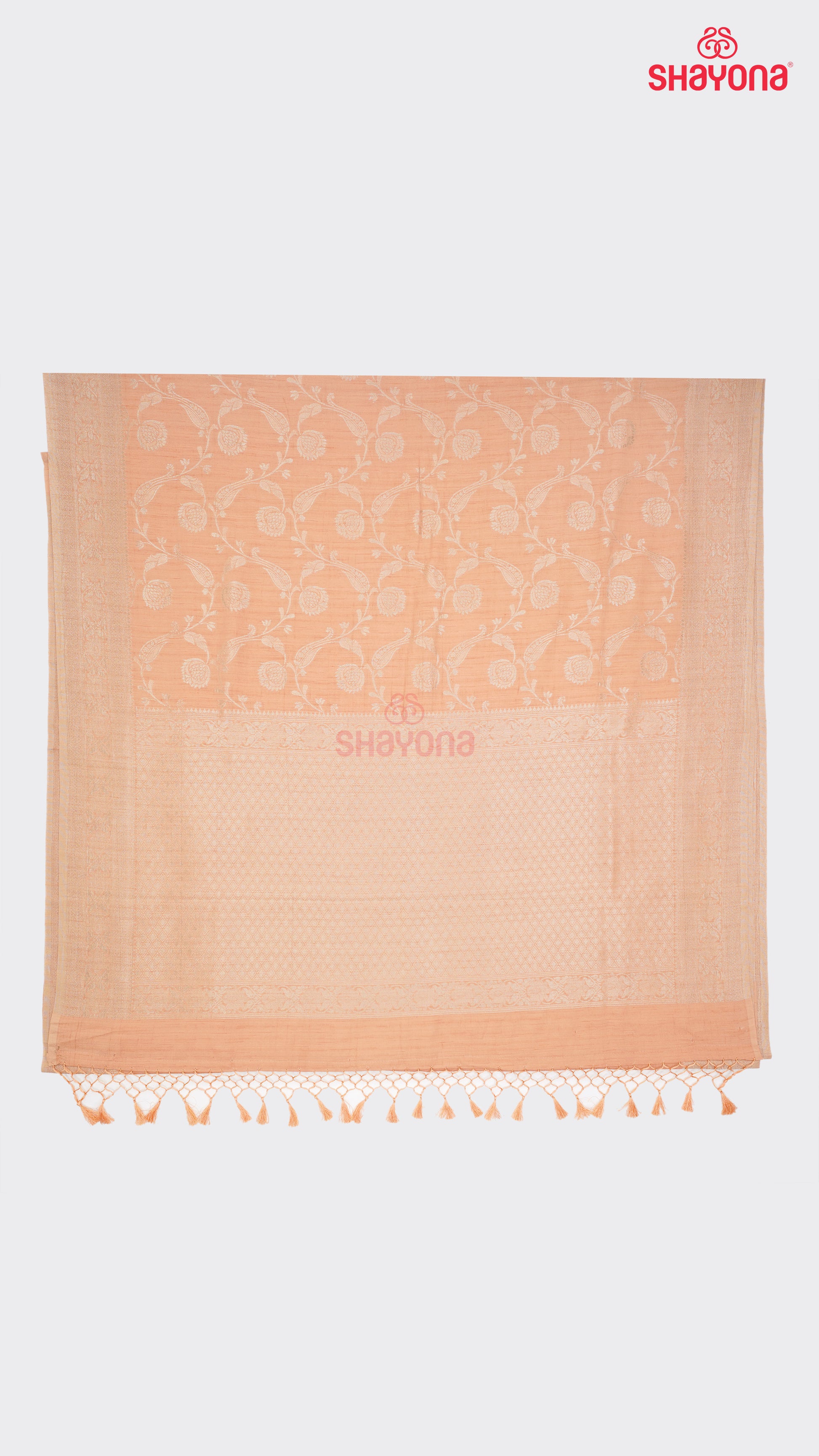 - #LightPeachBanarasi #JaalWorkSaree #NakshiBorderSilk #HeavyPallavElegance #KhaddiGeorgetteWeaves #PastelBanarasiCharm #ShayonaStyles #WeddingSaree2025 #BanarasiBliss #SoftSilkTradition