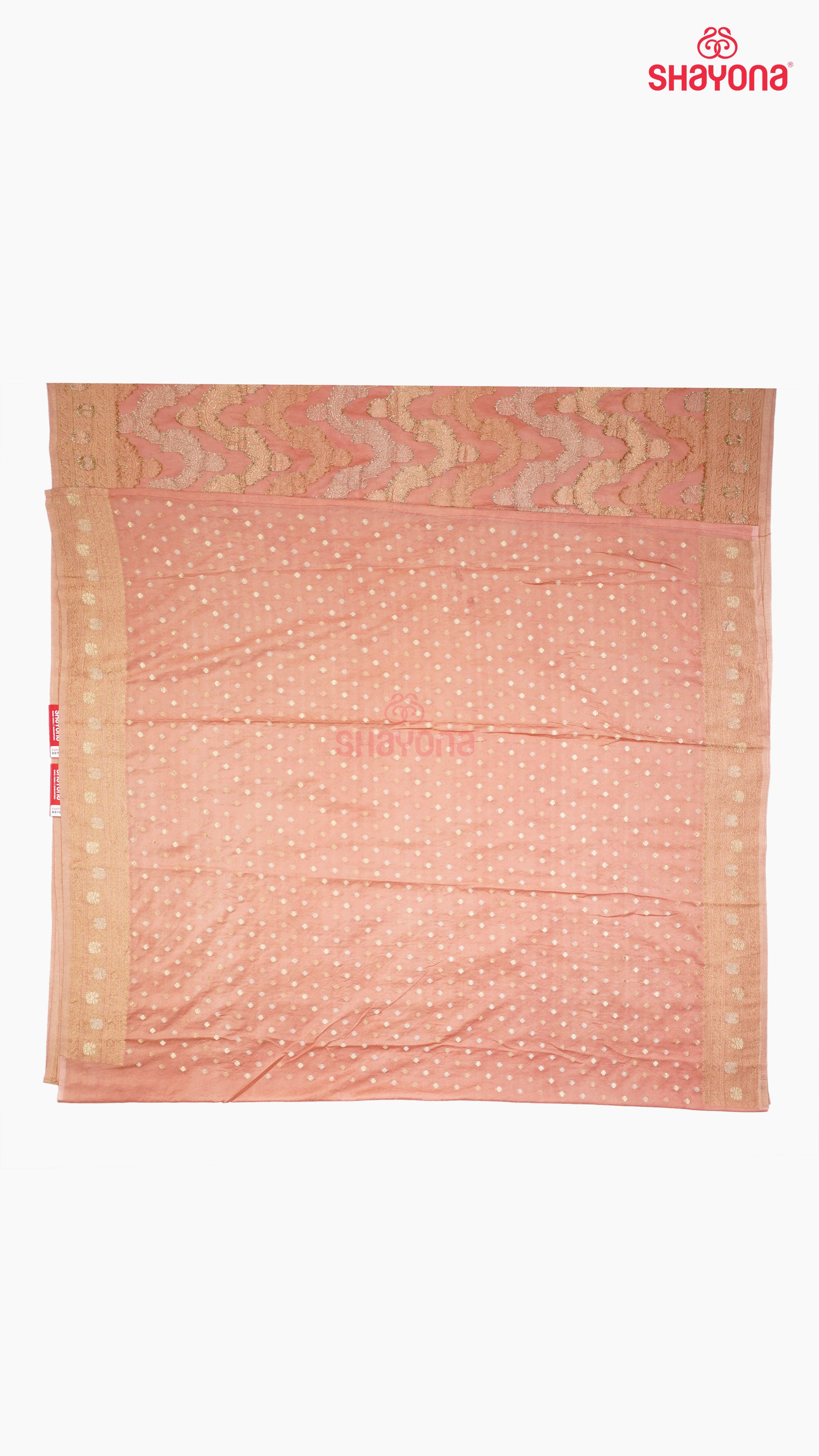 Light Rose Gold Banarasi Georgette Khaddi Print Saree with All-Over Jaal, Nakshi Border & Heavy Pallav