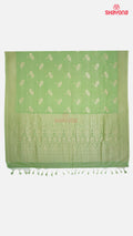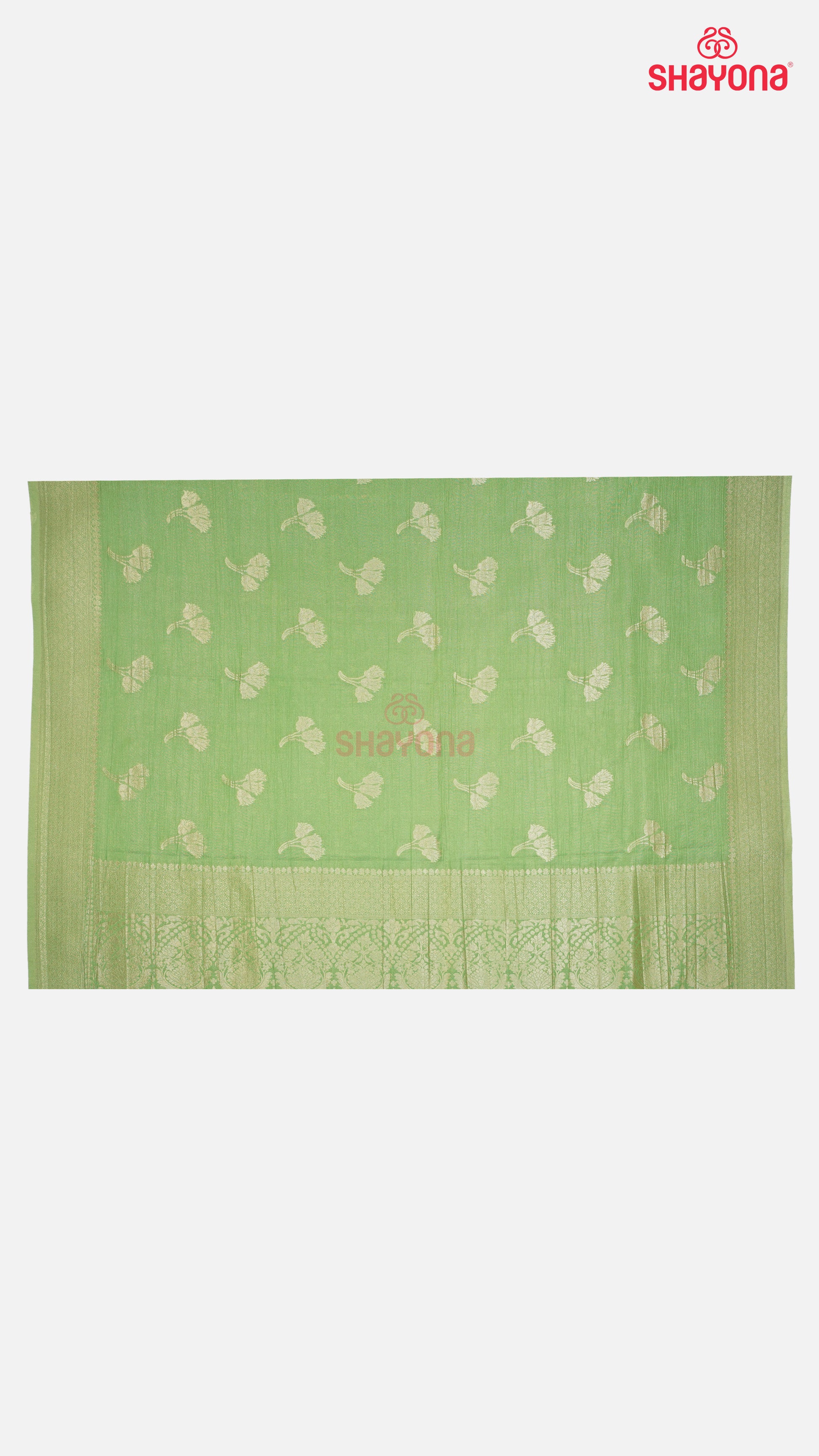 Medium Green Banarasi Georgette Khaddi Soft Silk Saree with Butta Gala, Jaal Nakshi Border & Heavy Pallav