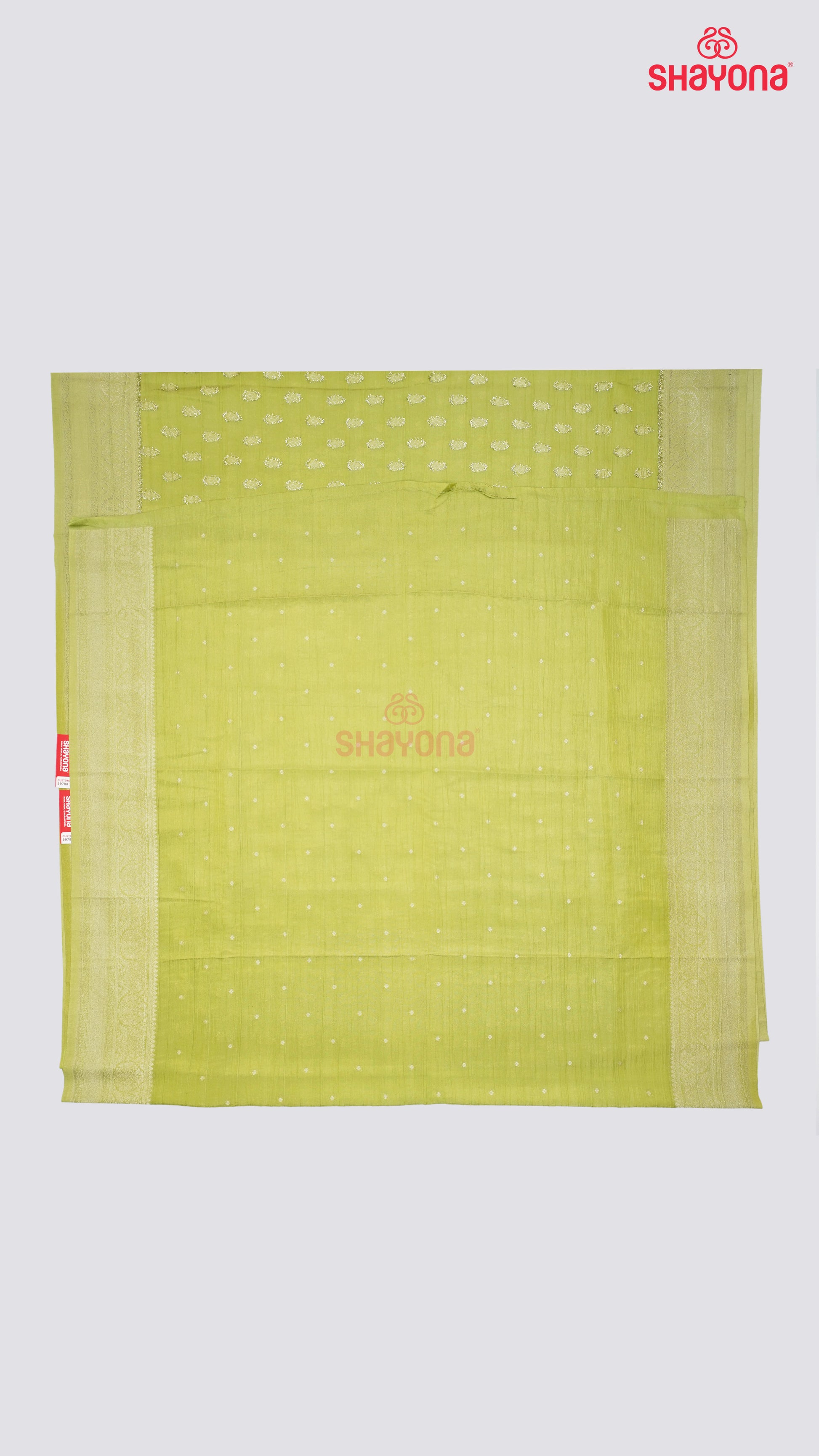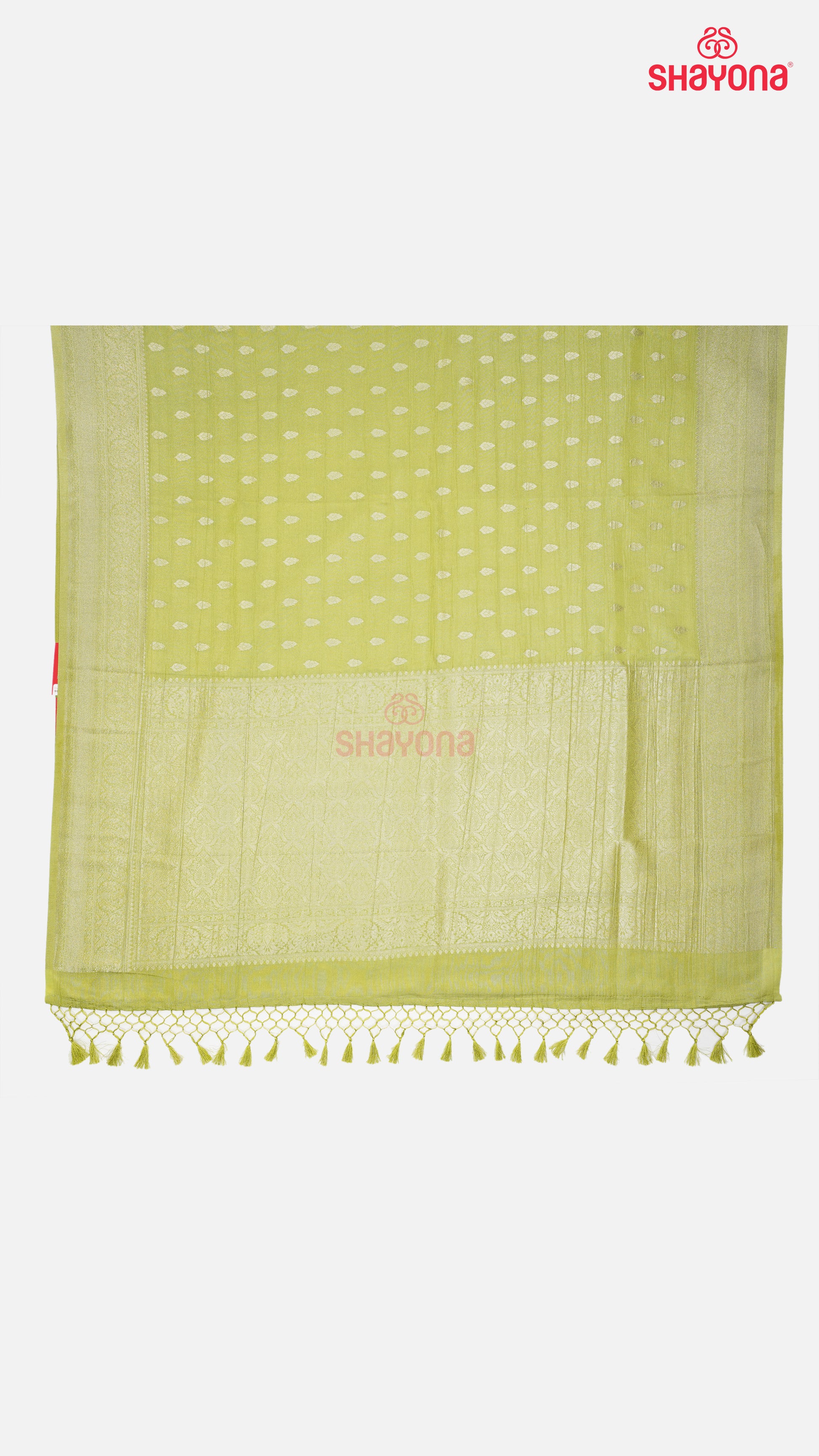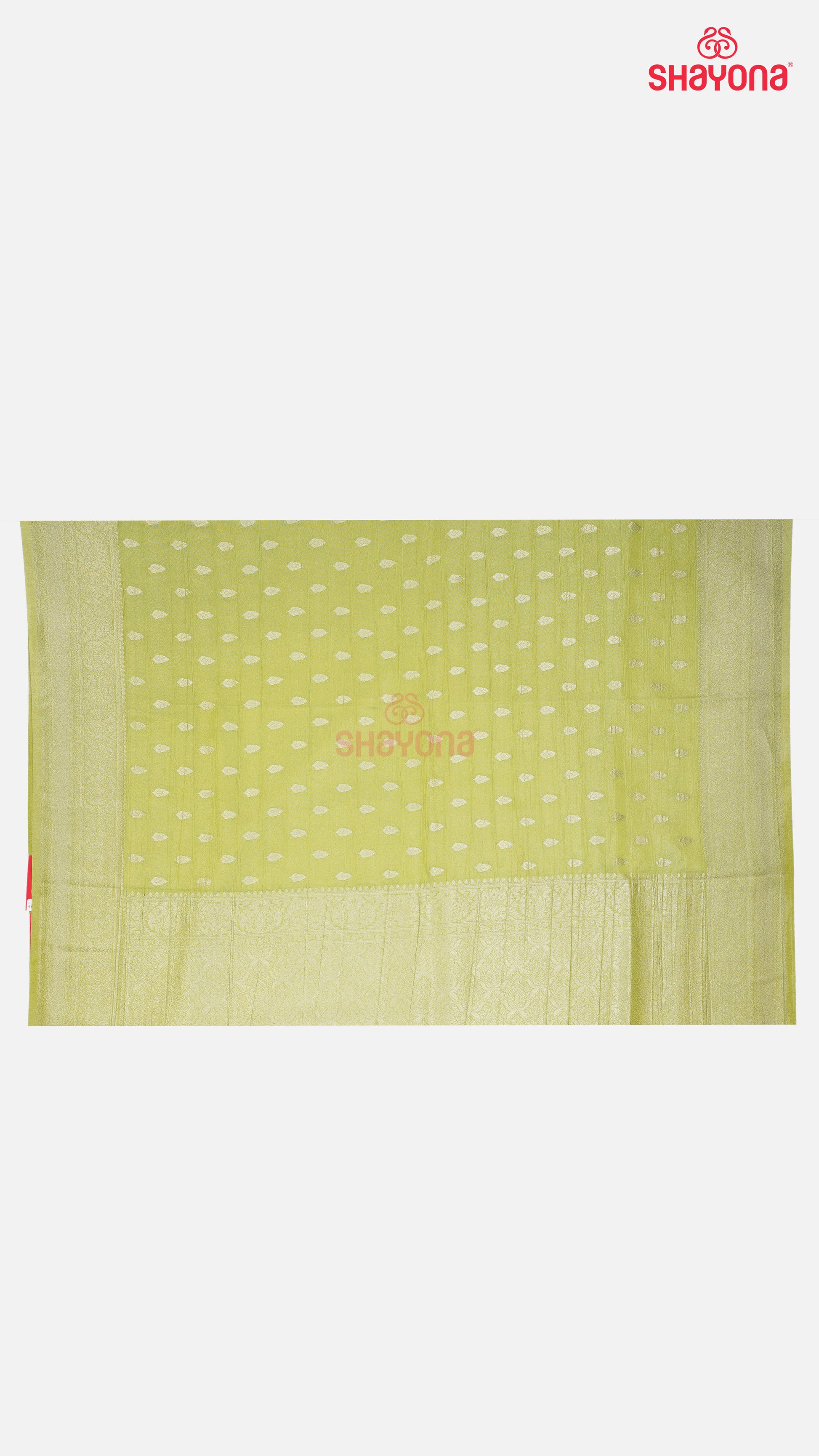 Olive Banarasi Georgette Khaddi Soft Silk Saree with Butti Gala, Jaal Nakshi Border & Heavy Pallav