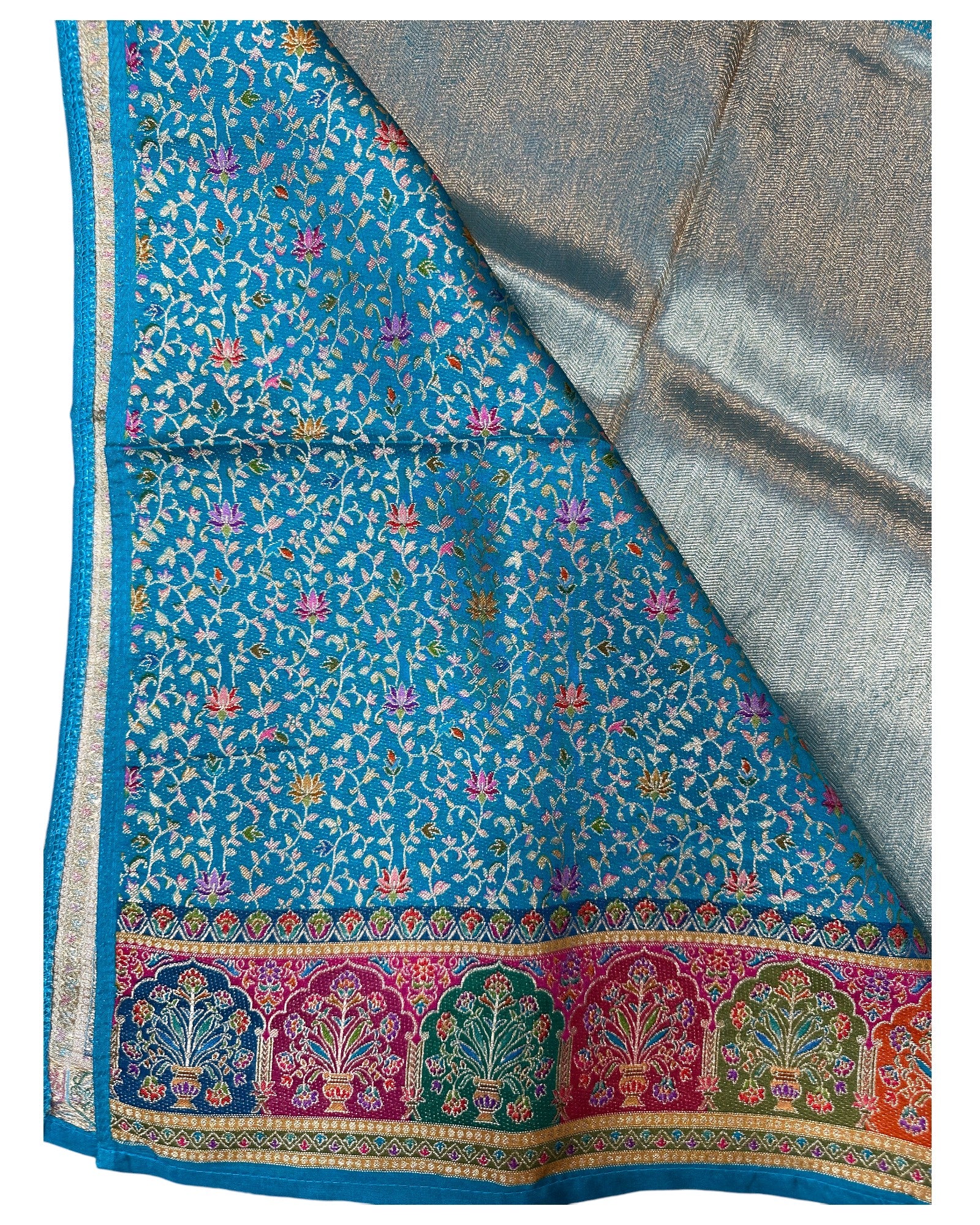 "Steel Blue Tissue Pashmina Silk Saree – Woven Heritage, Eternal Elegance"
