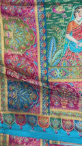 Step into sophistication with this Steel Blue Artificial Tissue Pashmina Silk Saree, woven with artistic finesse and cultural heritage. The saree features a plain gala enriched with butta jaal, while the heavy pallav and broad nakshi border are intricately designed with traditional motifs of peacocks, women, and floral patterns. Paired with a matching Steel Blue floral jaal blouse with border, this saree is a perfect choice for weddings, festivals, and grand occasions where elegance meets royalty.