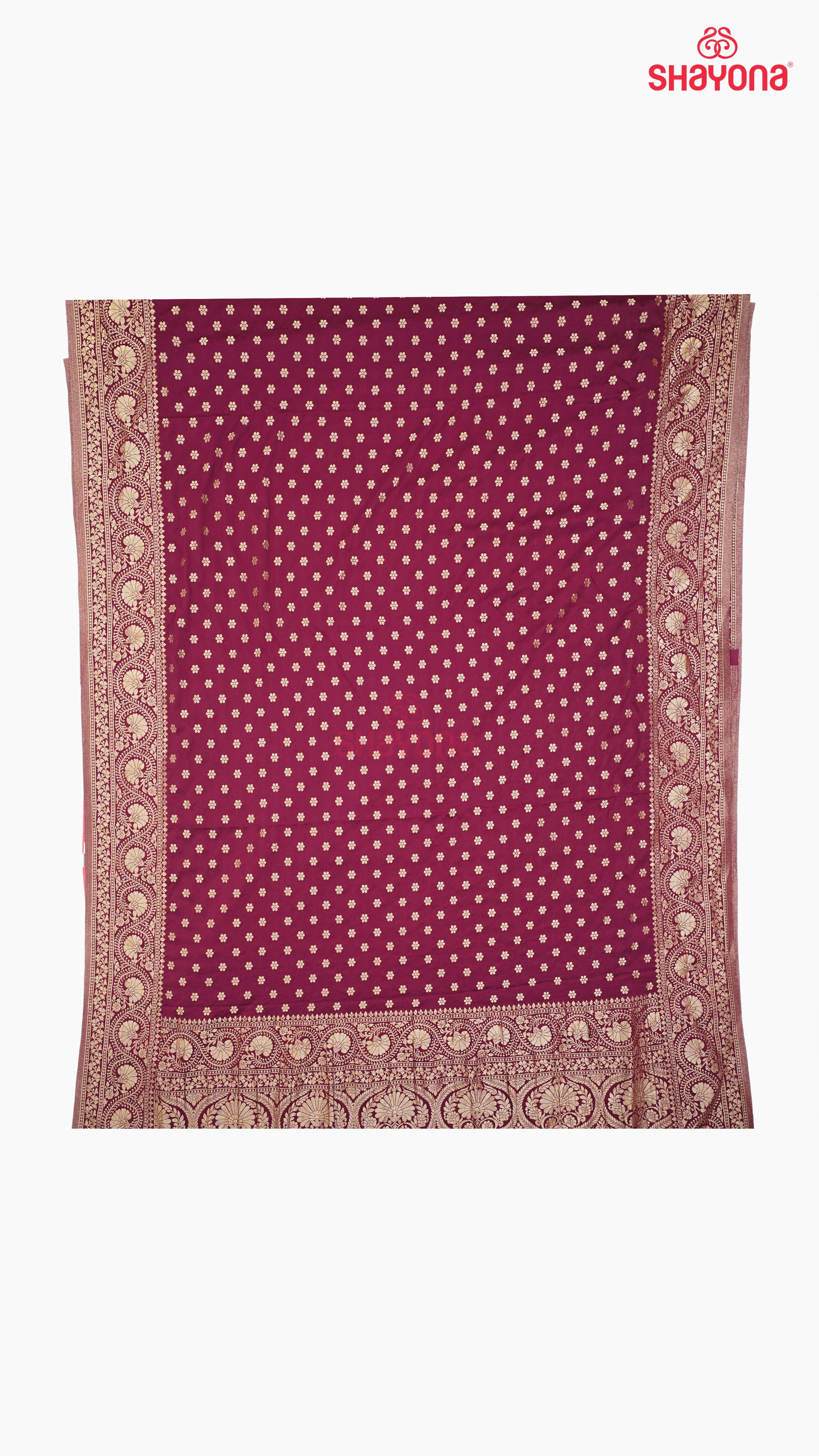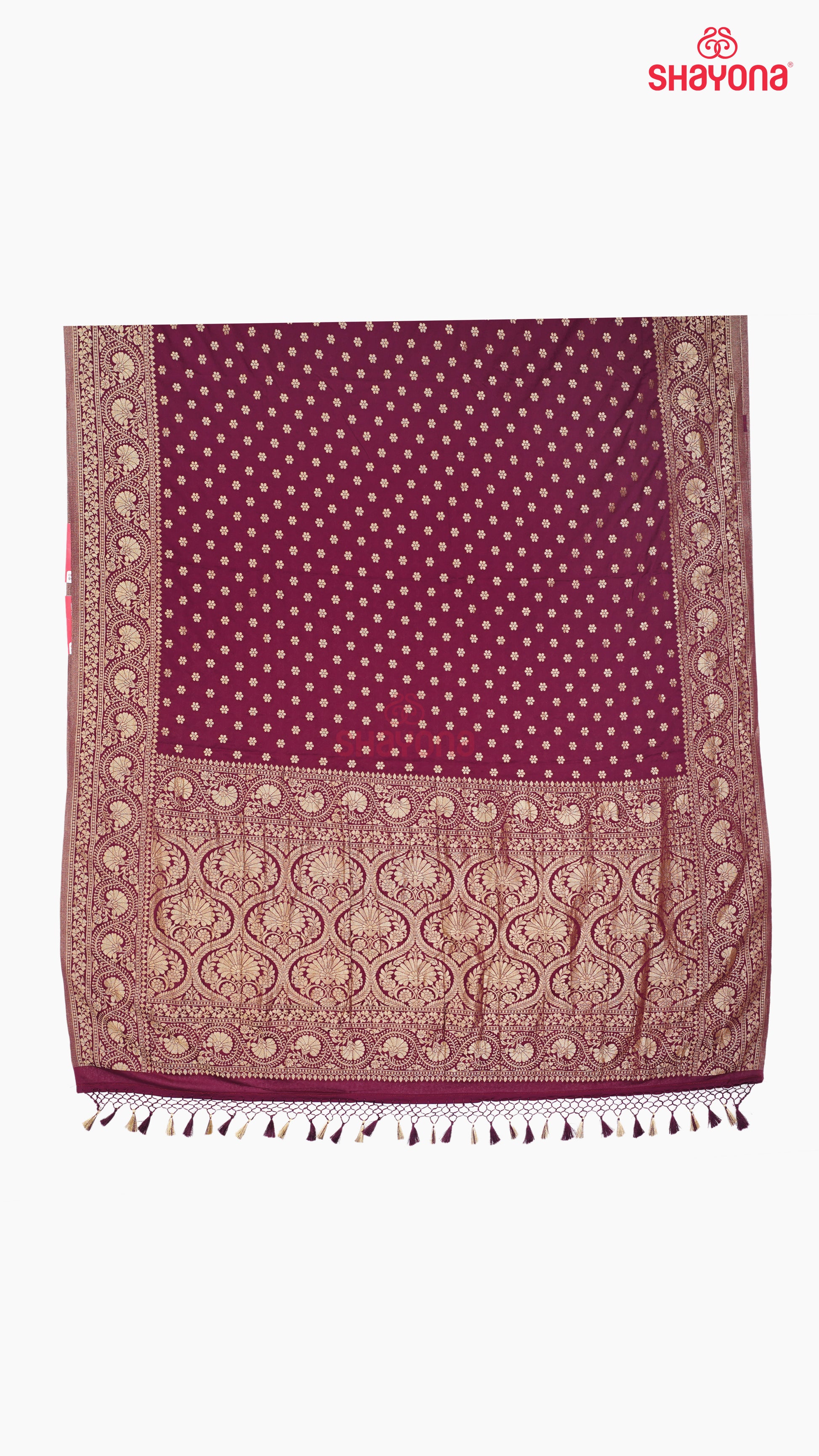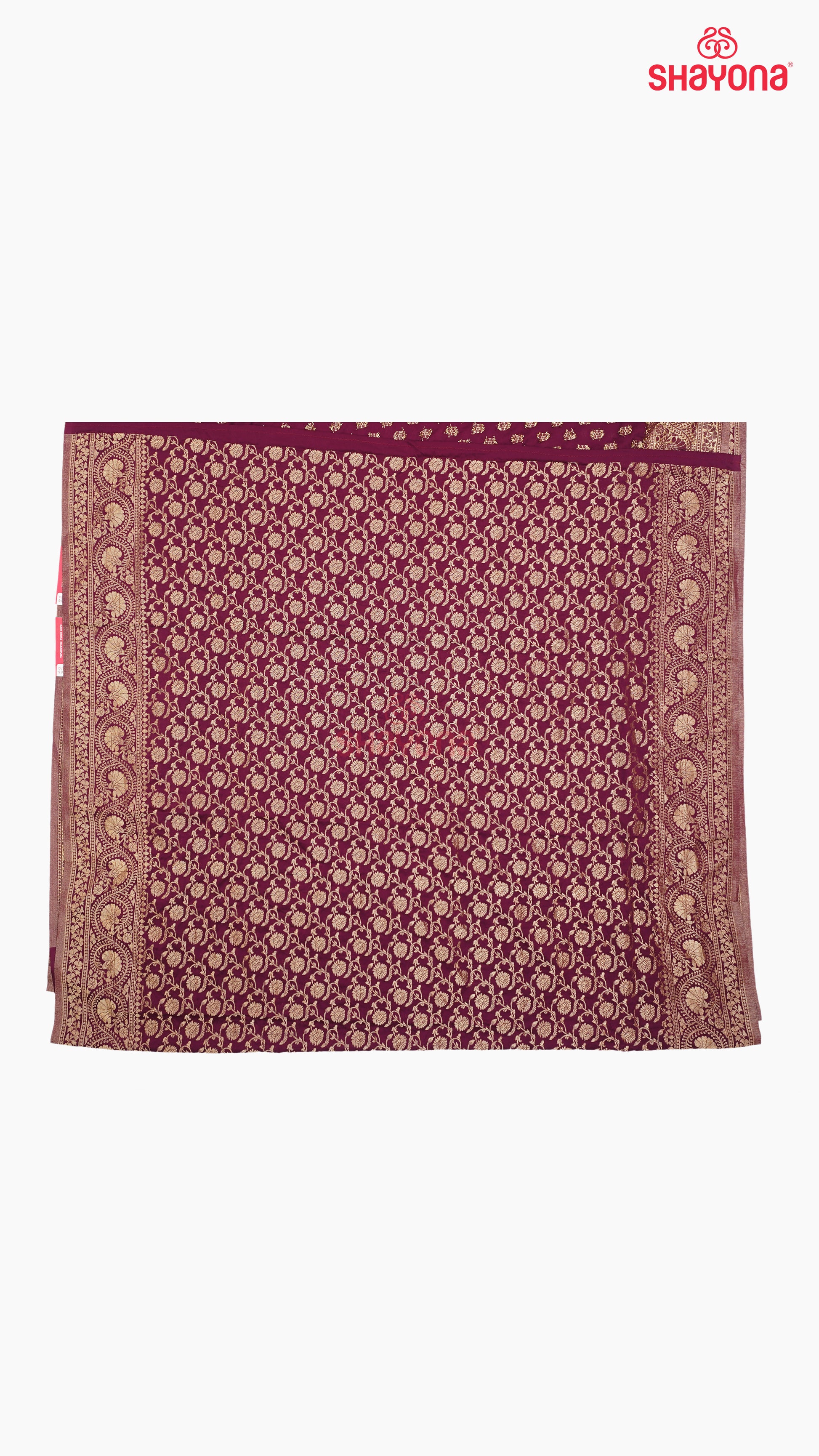 “Wine-Toned Grandeur – Banarasi Georgette Khaddi Saree Woven for Royal Occasions”