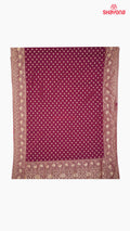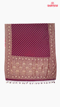 Wine Banarasi Georgette Khaddi Print Saree with All-Over Butti, Jaal Weave, Nakshi Border & Heavy Pallav