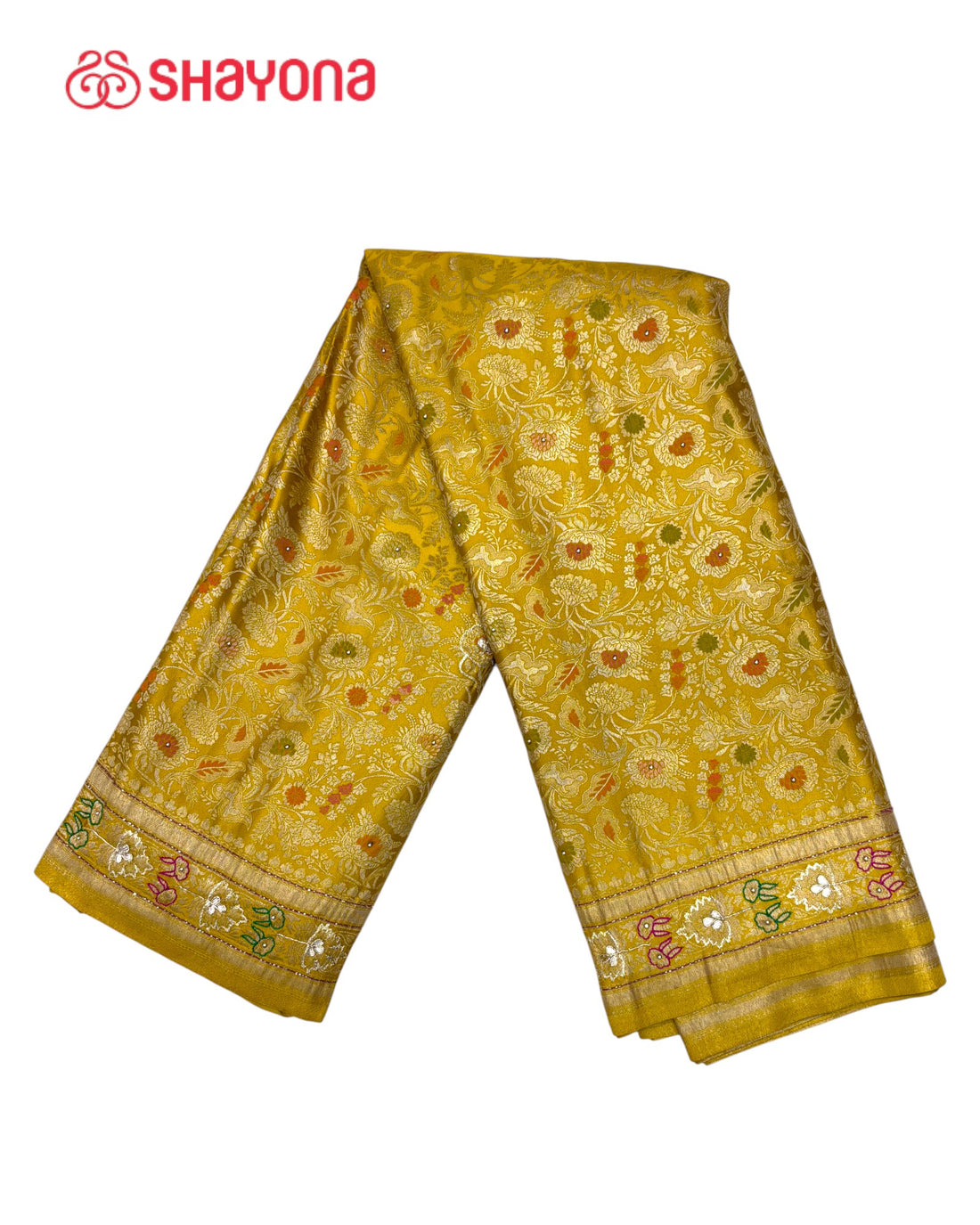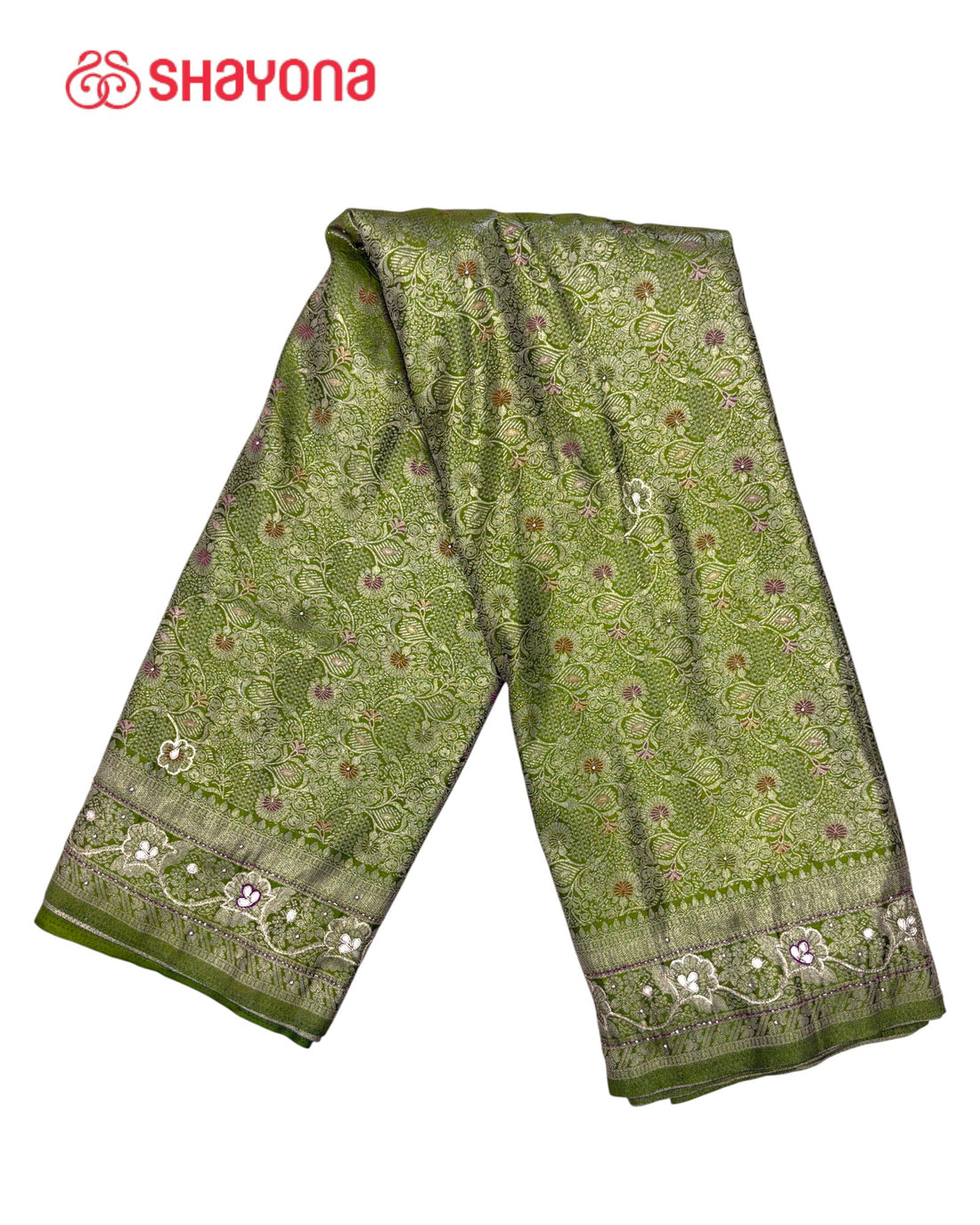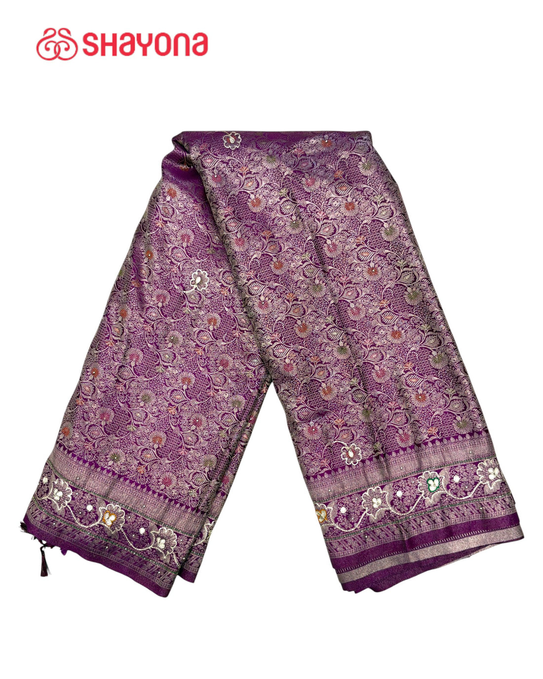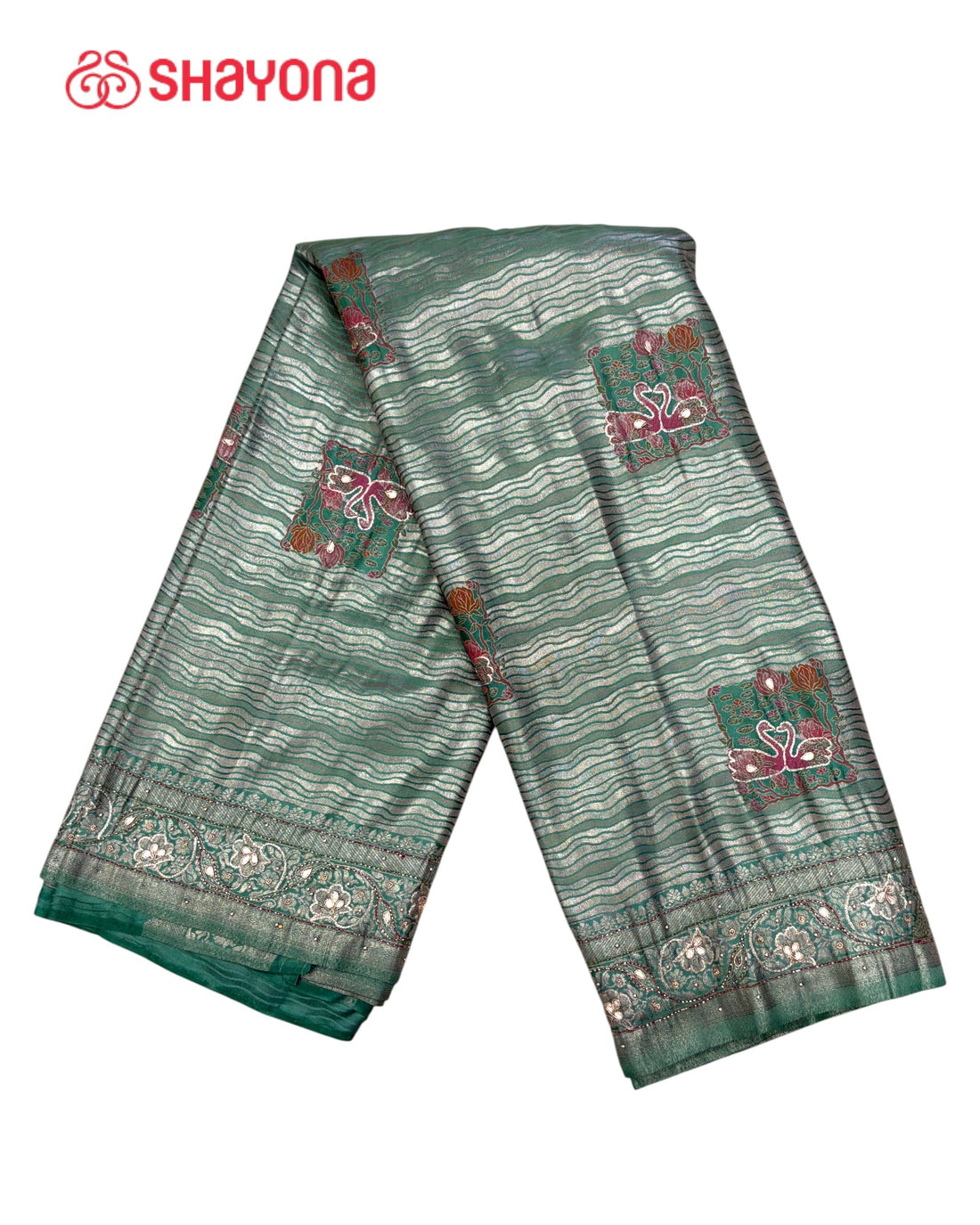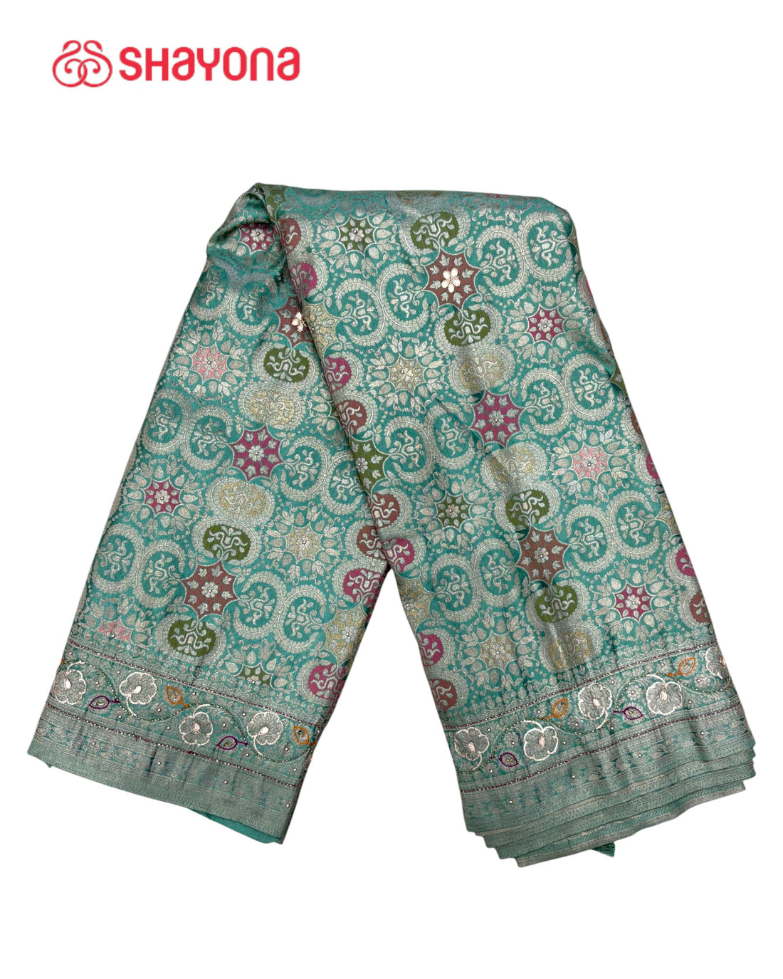 Party wear sarees are a staple in every Indian woman's wardrobe, and for good reason. Most of the party wear sarees are not made up of pure silk instead, the designers add more elements than the casual sarees, like heavy embroidery, which makes them look like party material. Partywear sarees are typically made from luxurious fabrics like silk, georgette, chiffon, and satin. These styles often incorporate unique designs and patterns that make them stand out.
