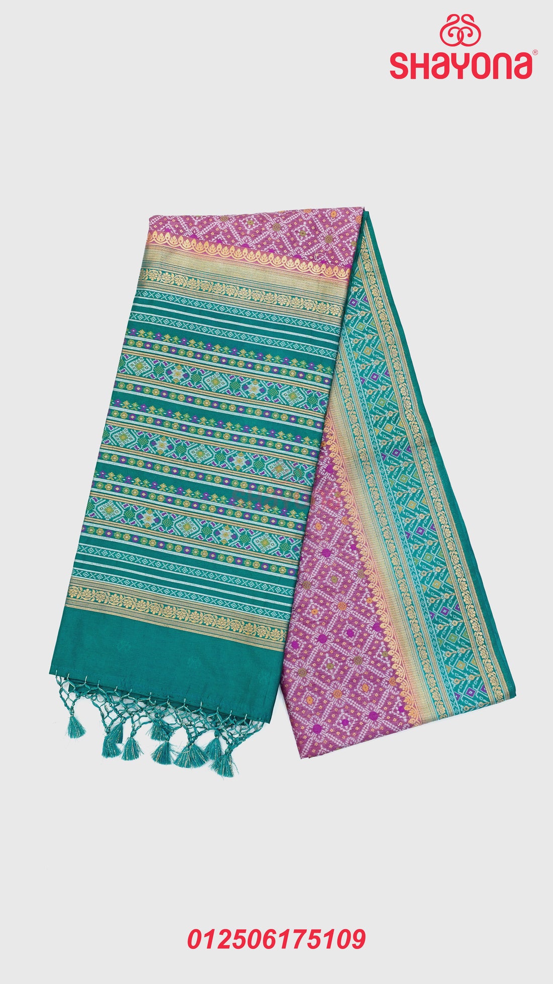Onion Purple & Cadet Blue Ghicha Art Silk Saree