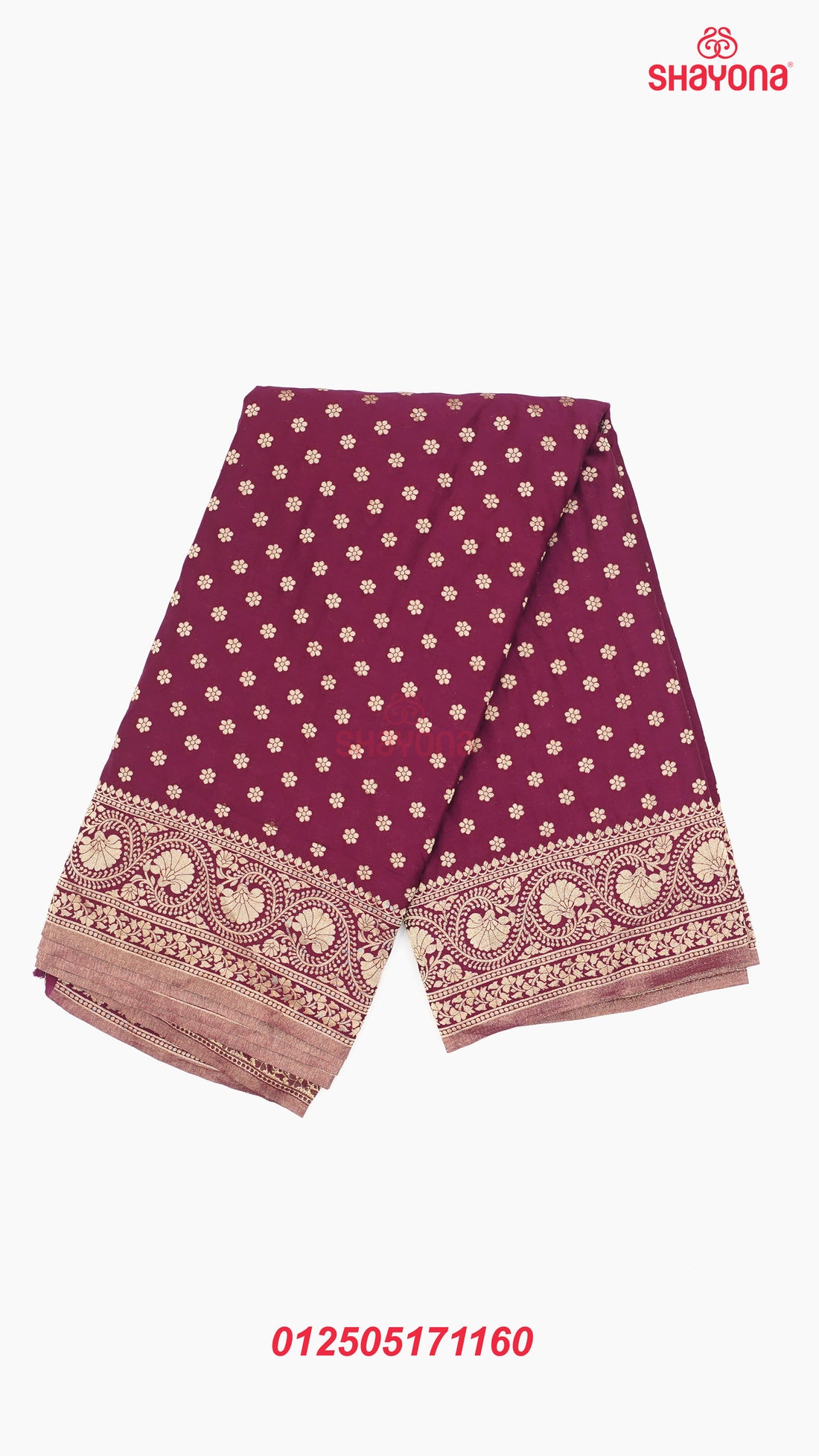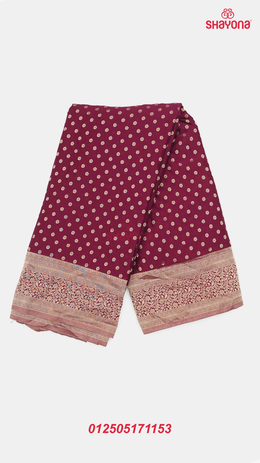 Product Description: Grace your special occasions with the regal charm of this Wine-Coloured Banarasi Georgette...