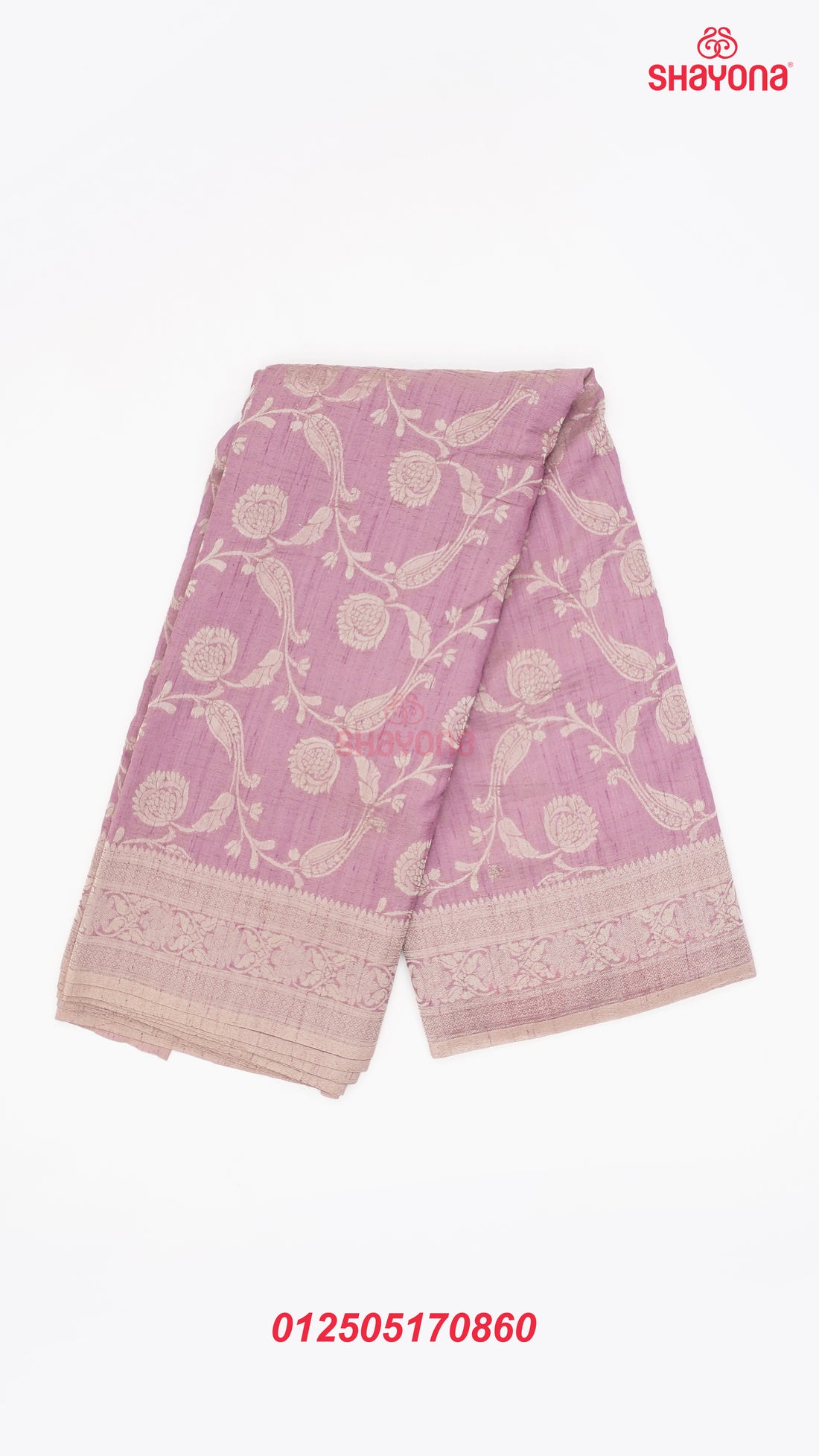 Product Description: Wrap yourself in ethereal charm with this elegant Lavender Banarasi Georgette Khaddi Print...