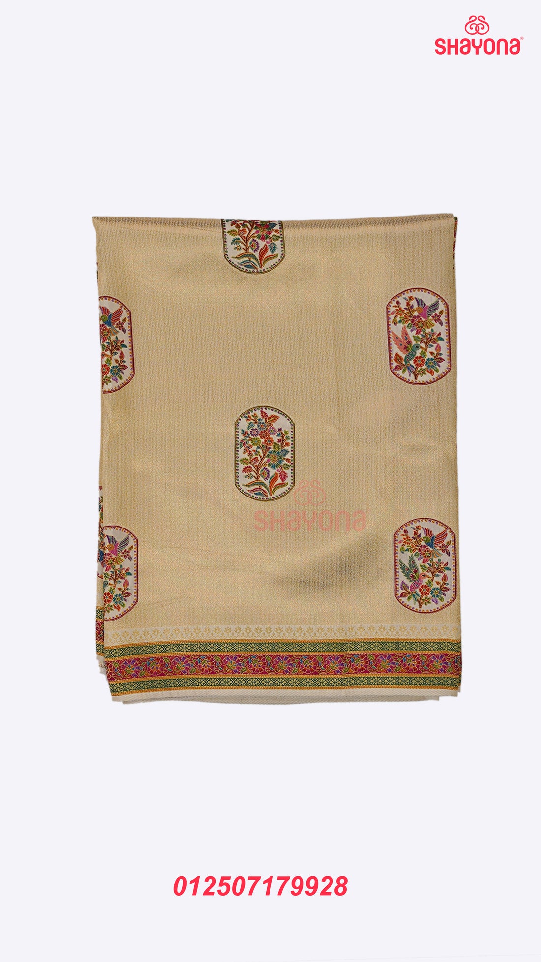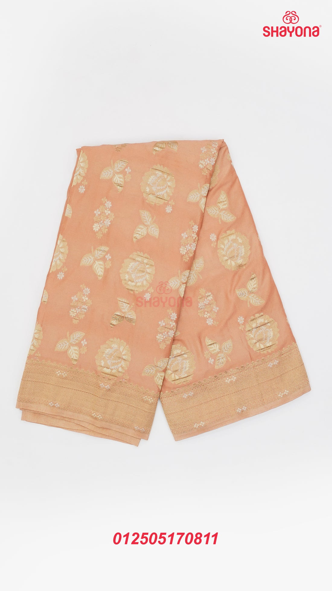 Product Description: Embrace refined tradition with this Light Rose Gold coloured Banarasi Georgette Khaddi Print...
