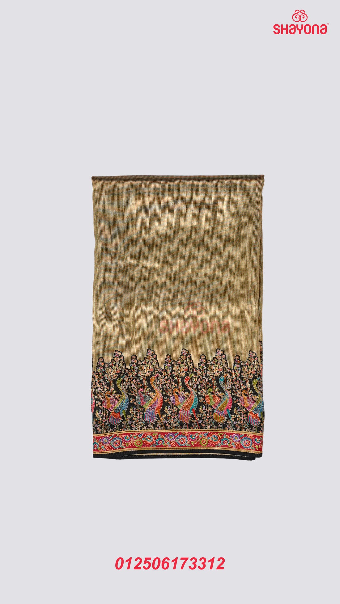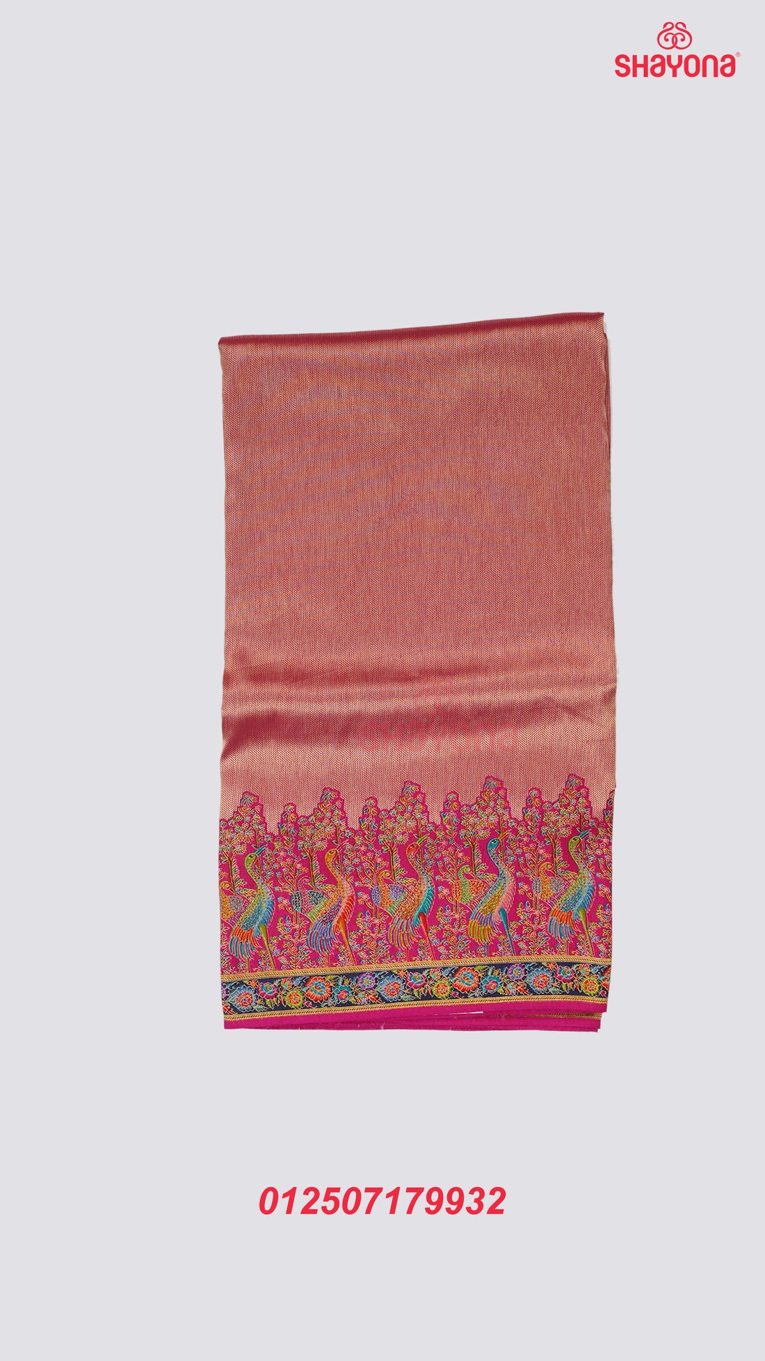 Product Description: Step into refined grace with this luxurious Rose Gold Banarasi Georgette Khaddi Print...