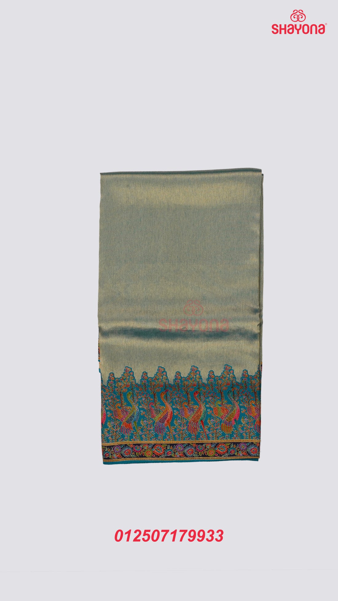 Dark Sage Green Weaved Tissue Art Silk Saree