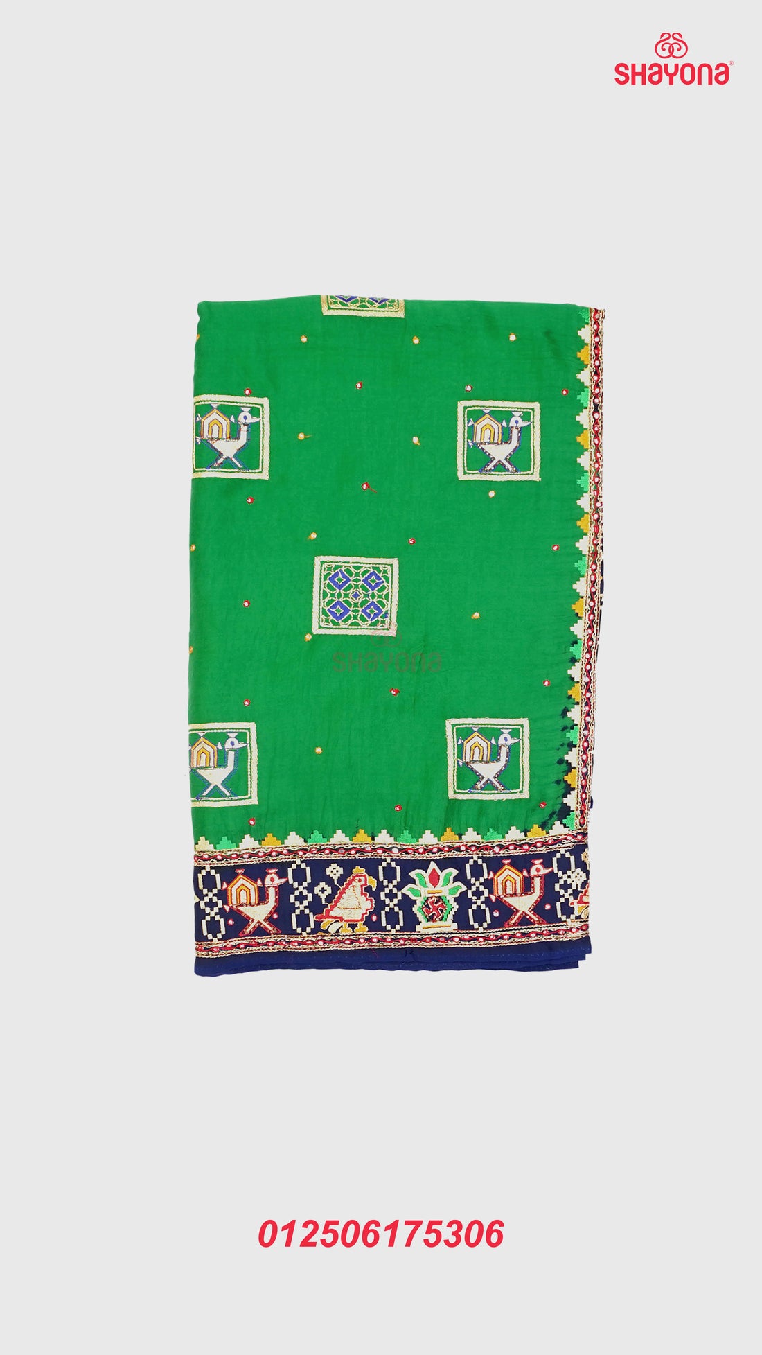 Dark Green & Dark Navy Blue Pure Gajji Silk Gharchola Saree