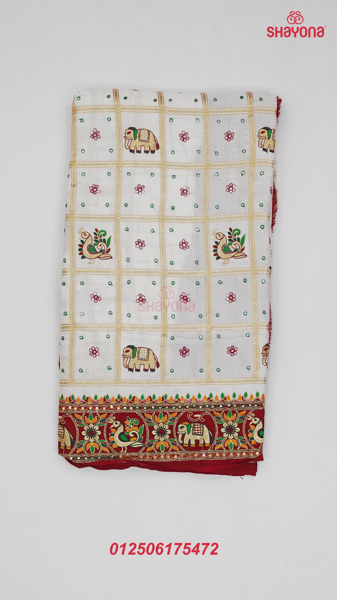 White & Maroon Pure Gajji Silk Gharchola Saree