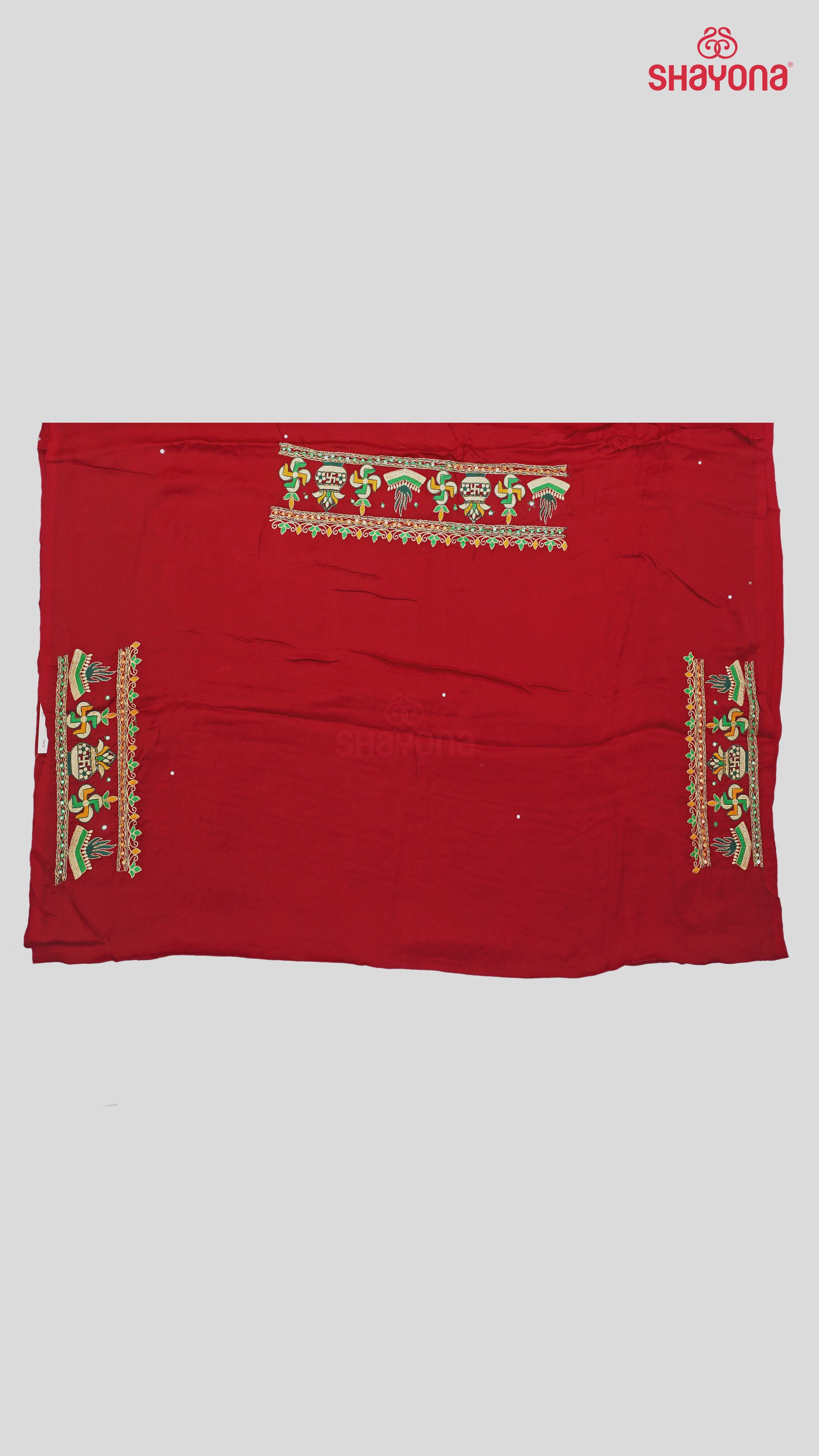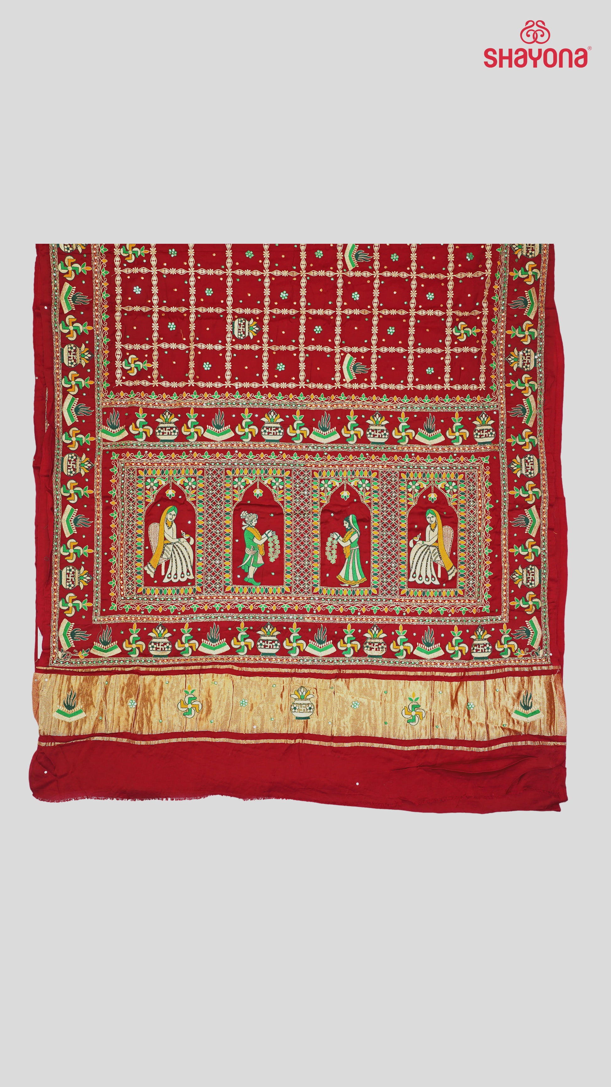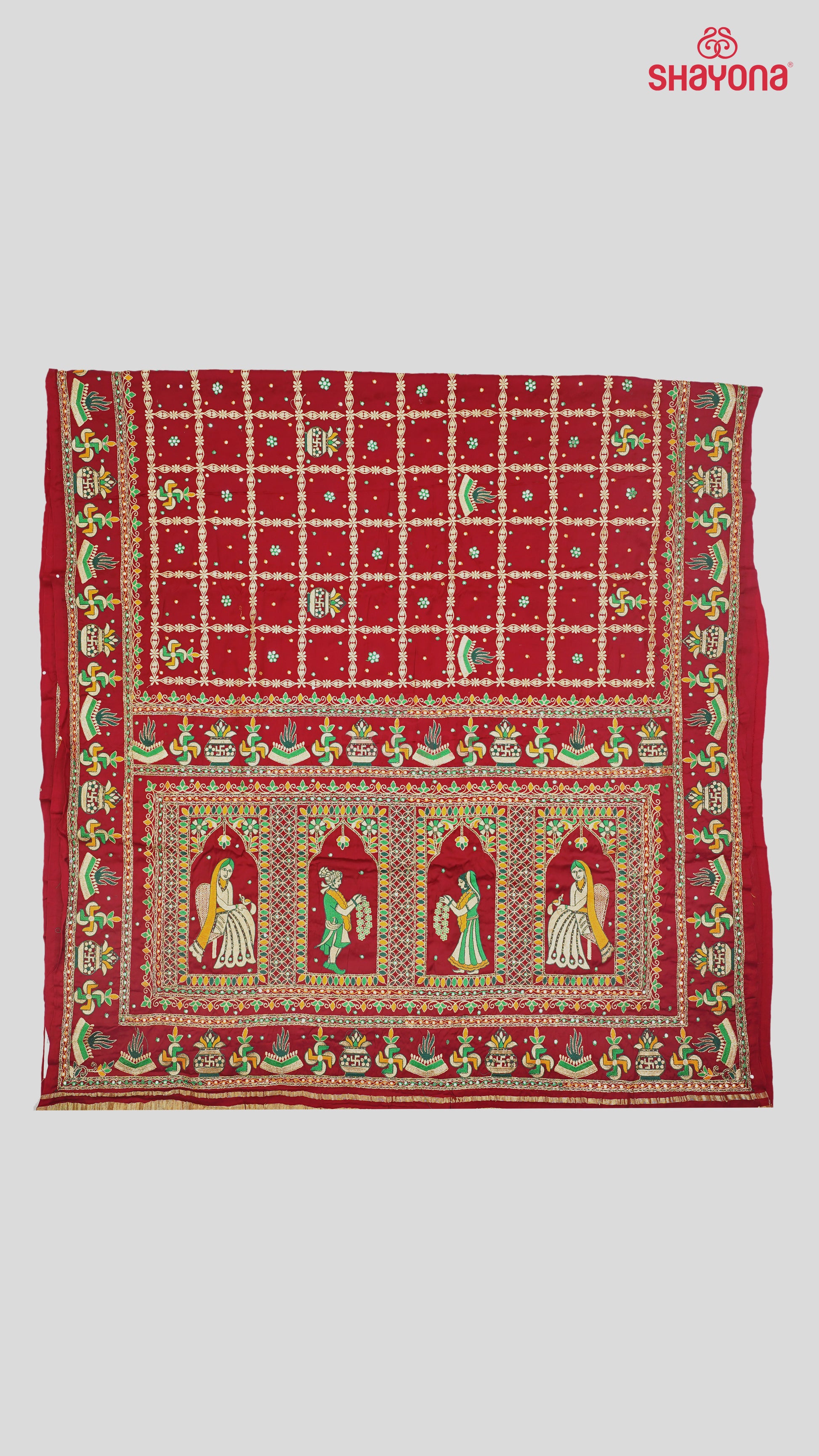 Maroon coloured Pure Gajji Silk Gharchola Saree
