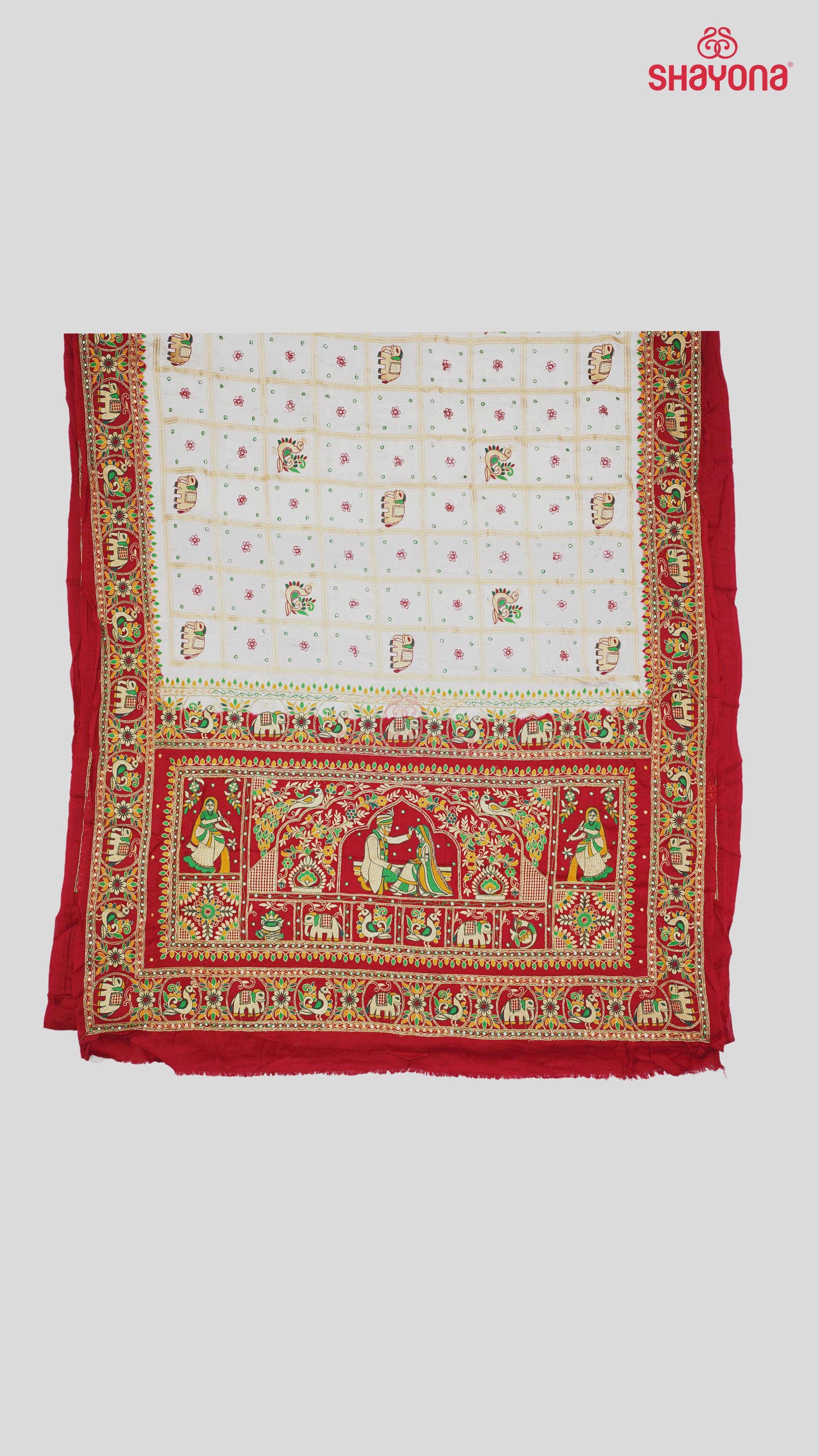 White & Maroon Pure Gajji Silk Gharchola Saree