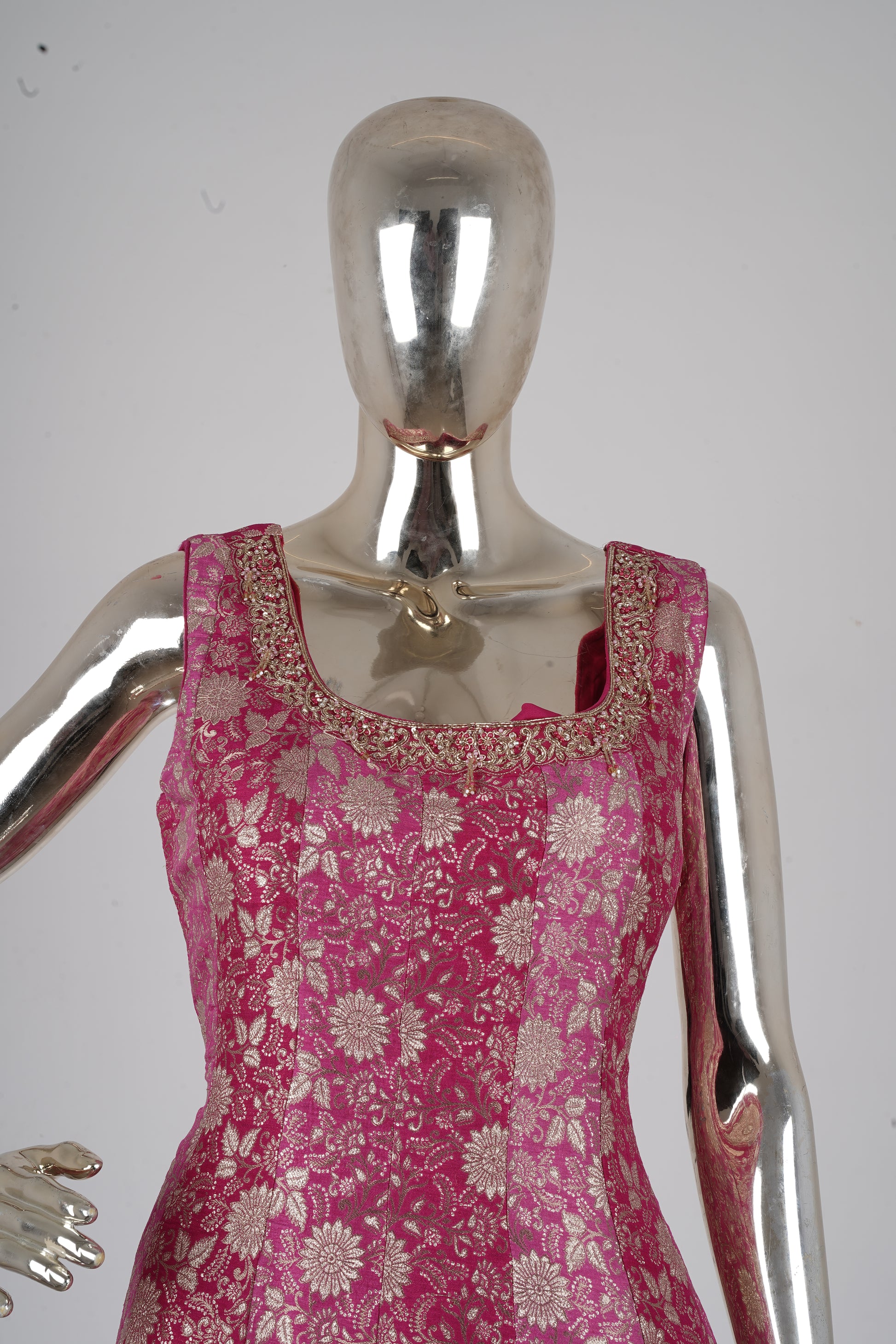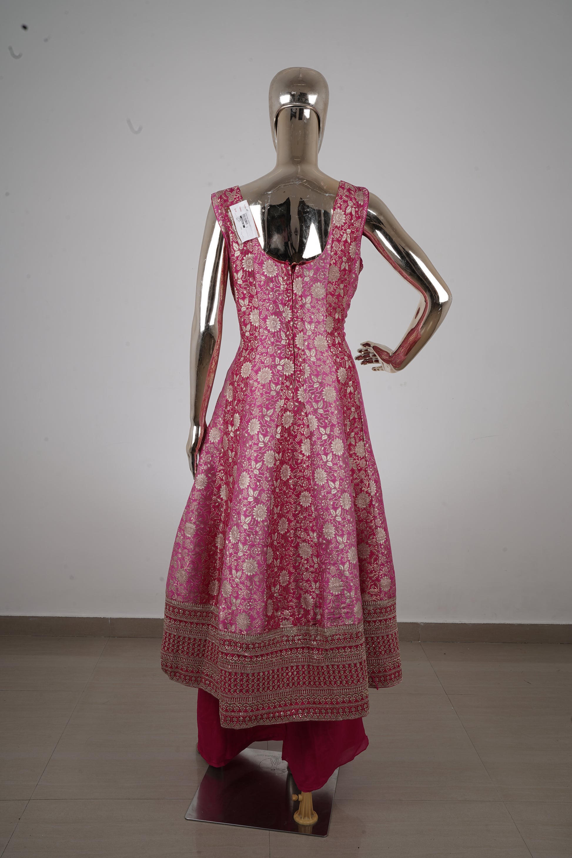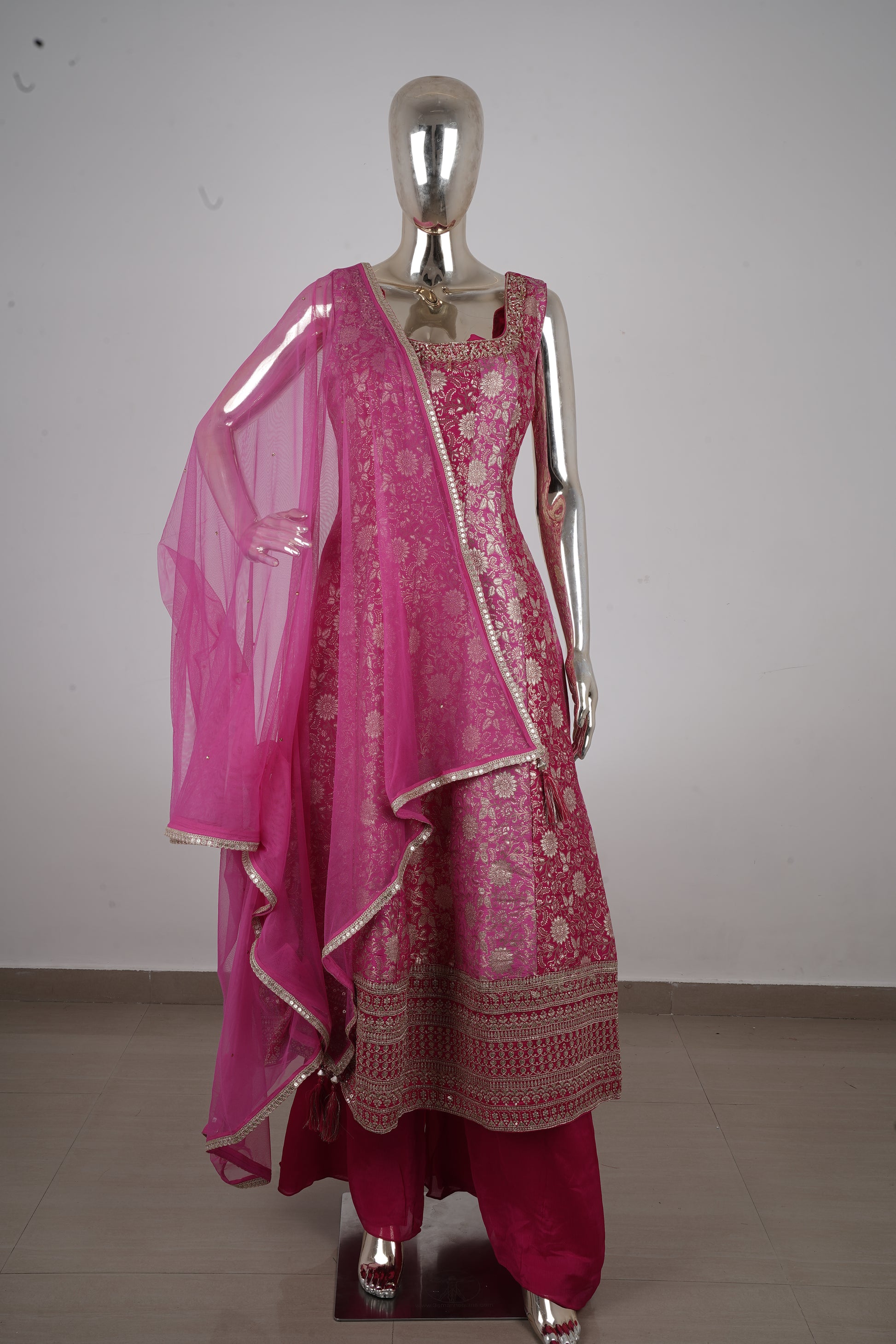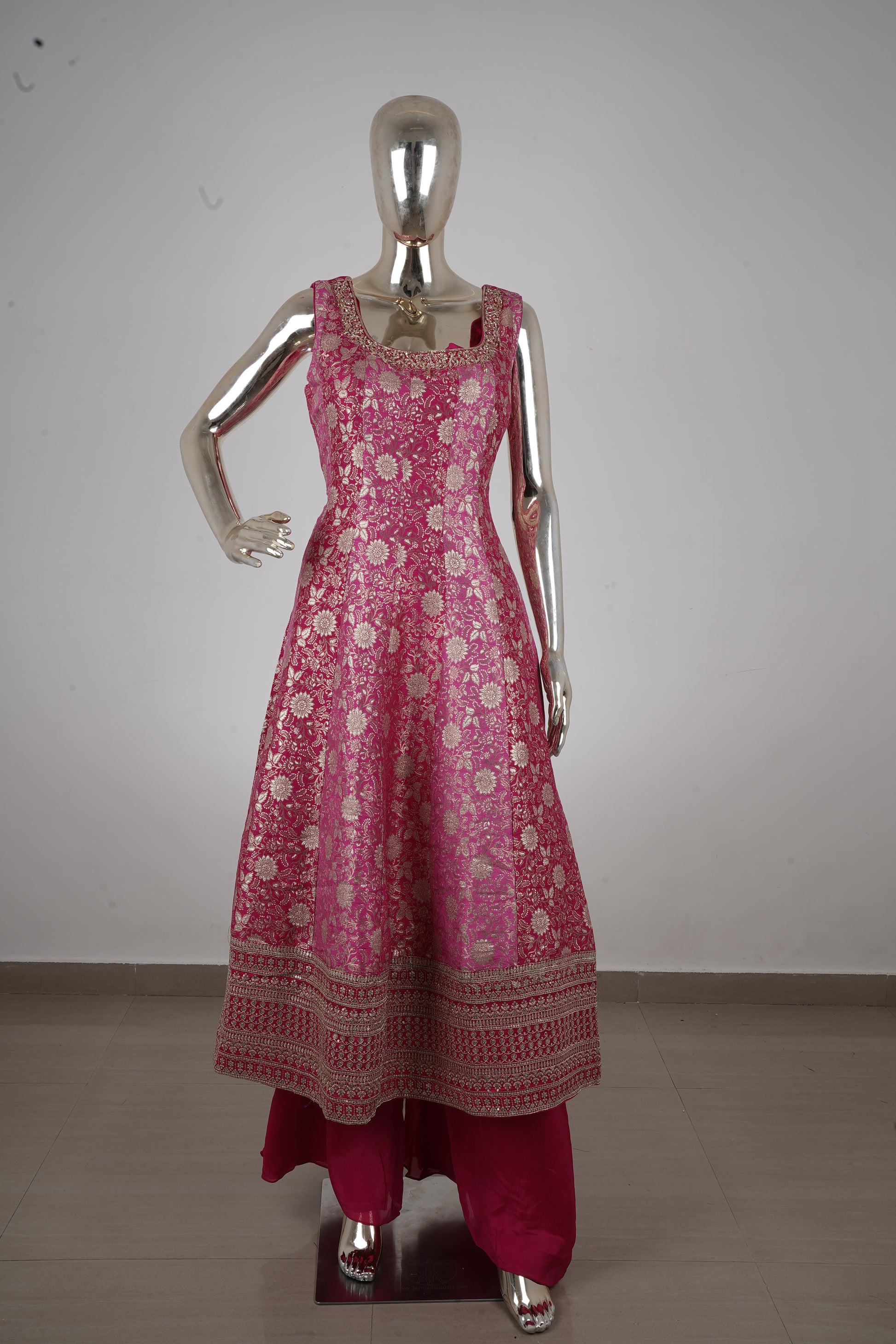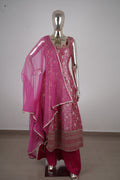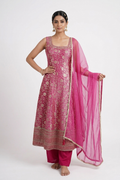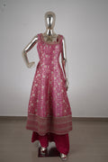Dark Pink Banarasi Silk Anarkali Suit Set with Palazzo