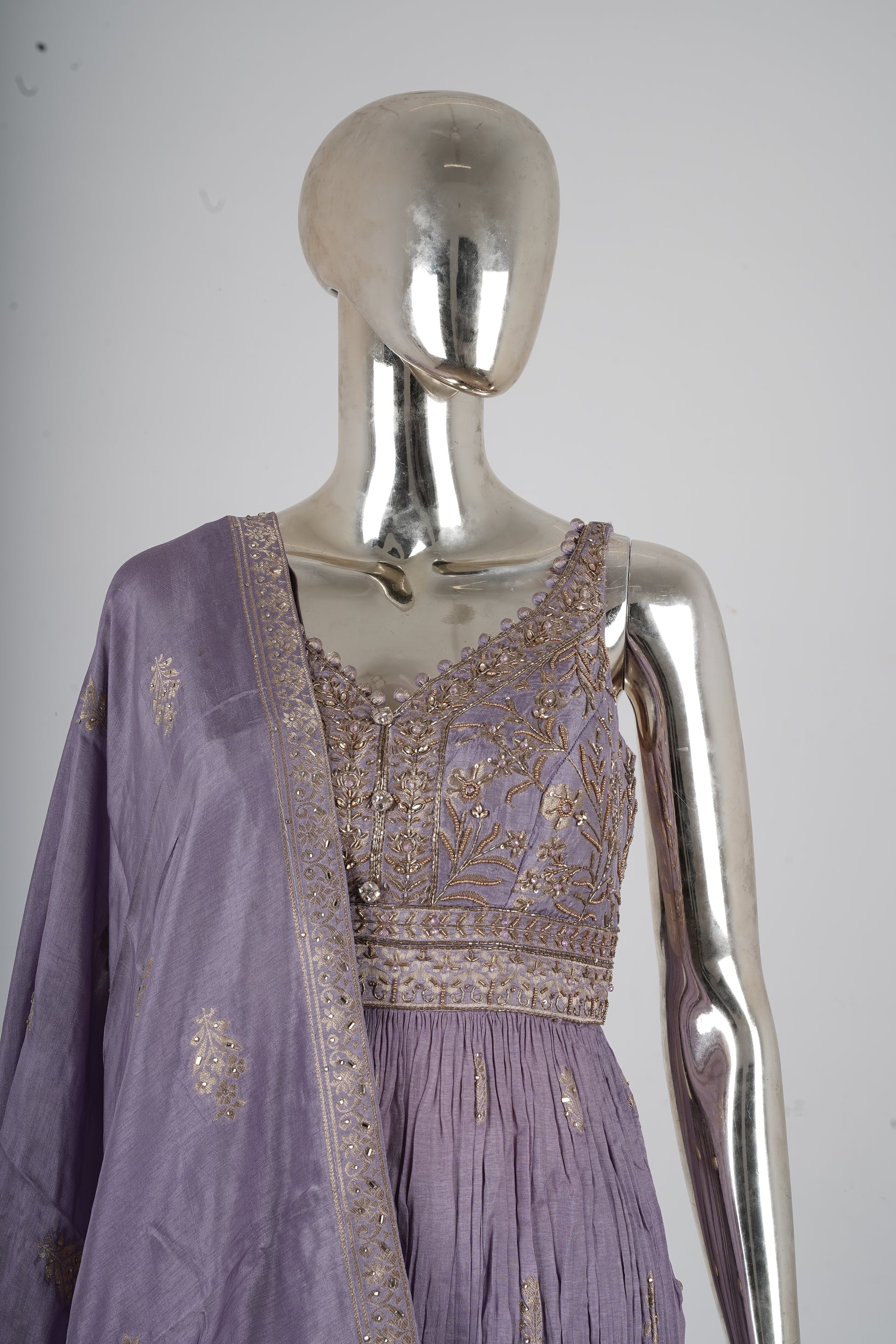 Lavender Zari Embroidered Anarkali Set with Dupatta