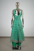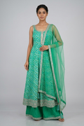 Medium Aqua Leheriya Anarkali Suit Set With Palazzo & Organza Dupatta