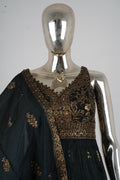 Midnight Teal Zari Embroidered Anarkali Set with Dupatta
