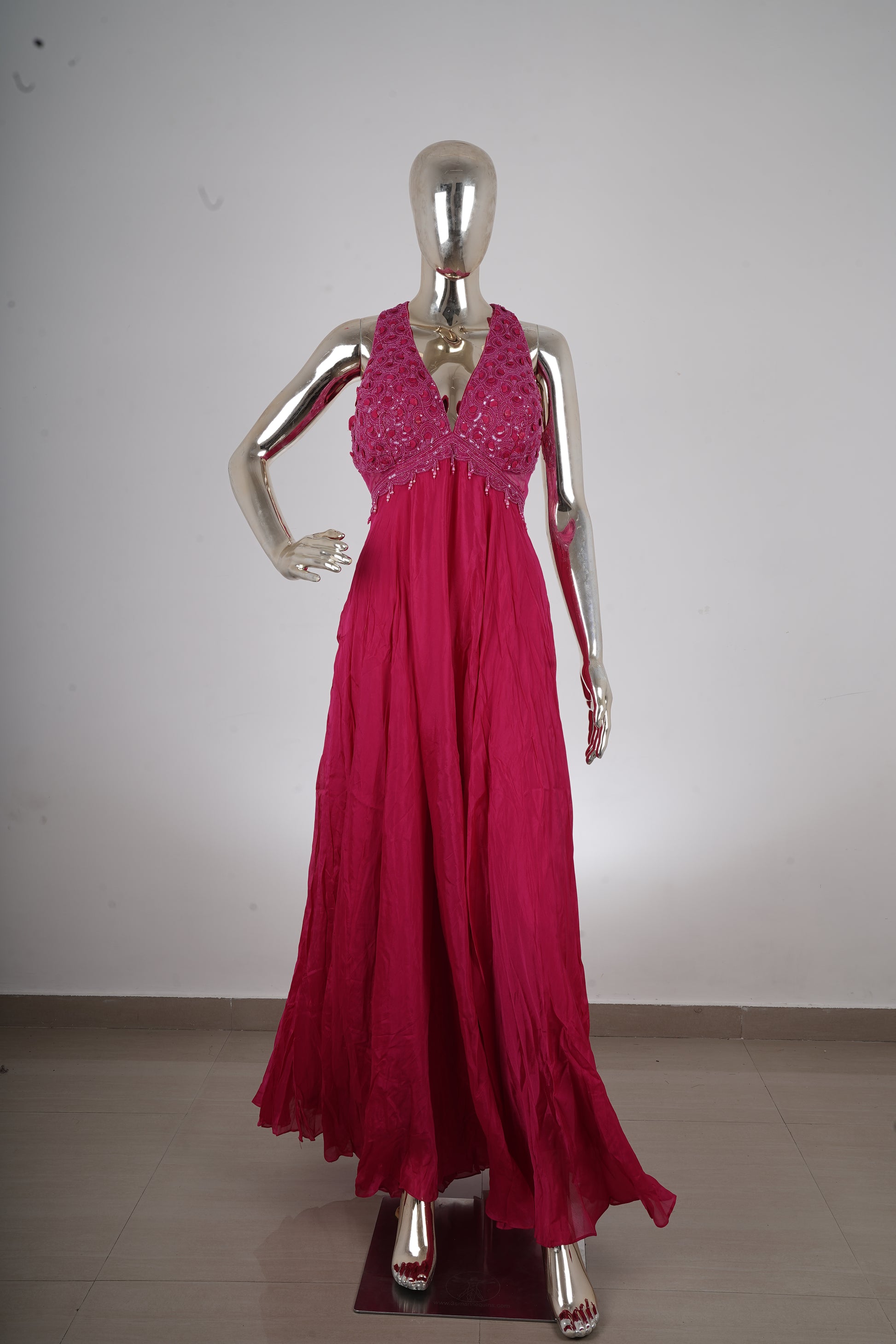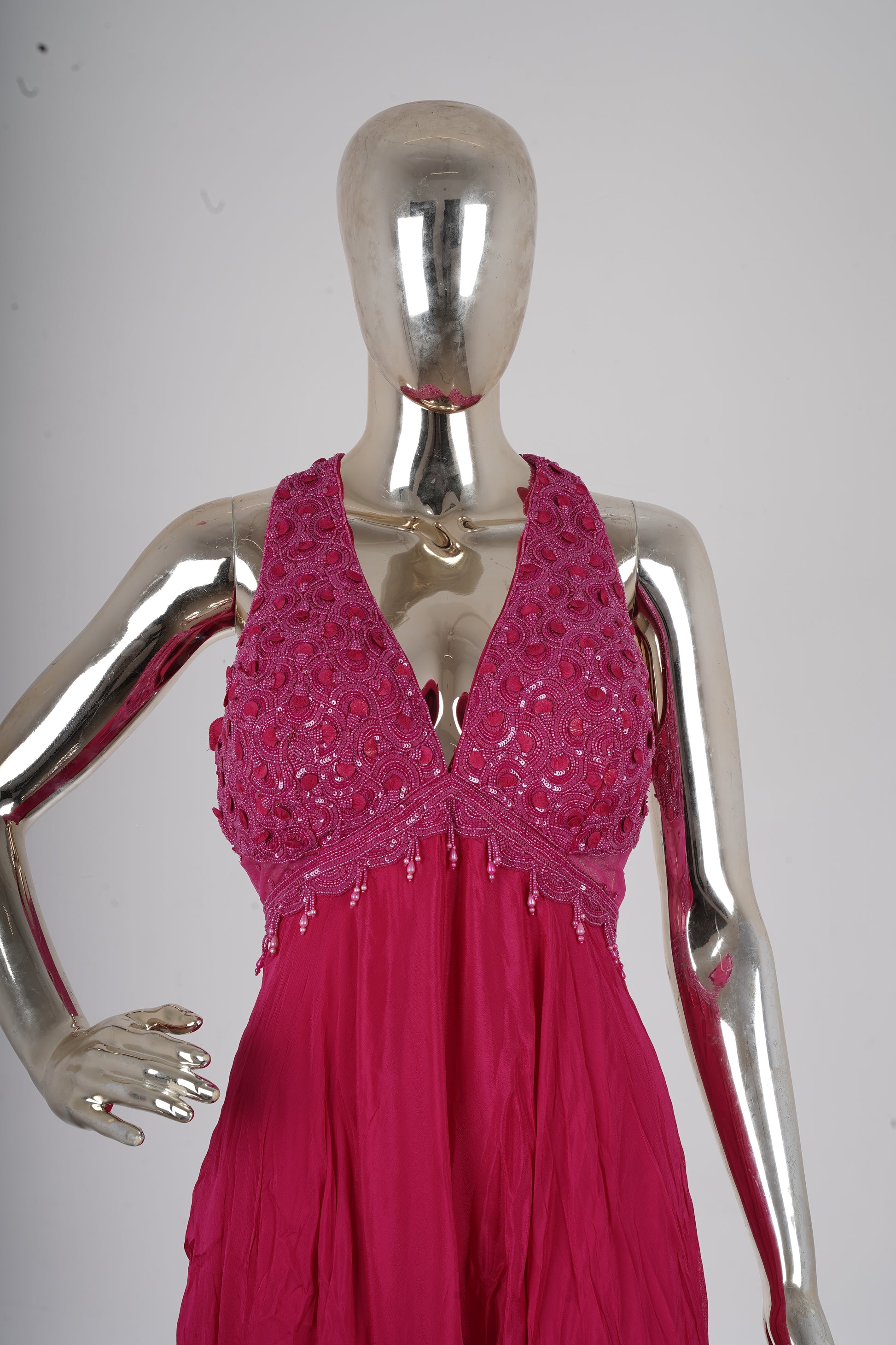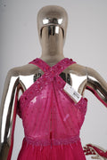Raspberry Pink Embellished Halter Flowing Gown