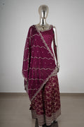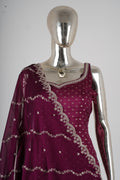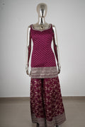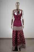Wine Maroon Embroidered Kurta Sharara Set with Dupatta