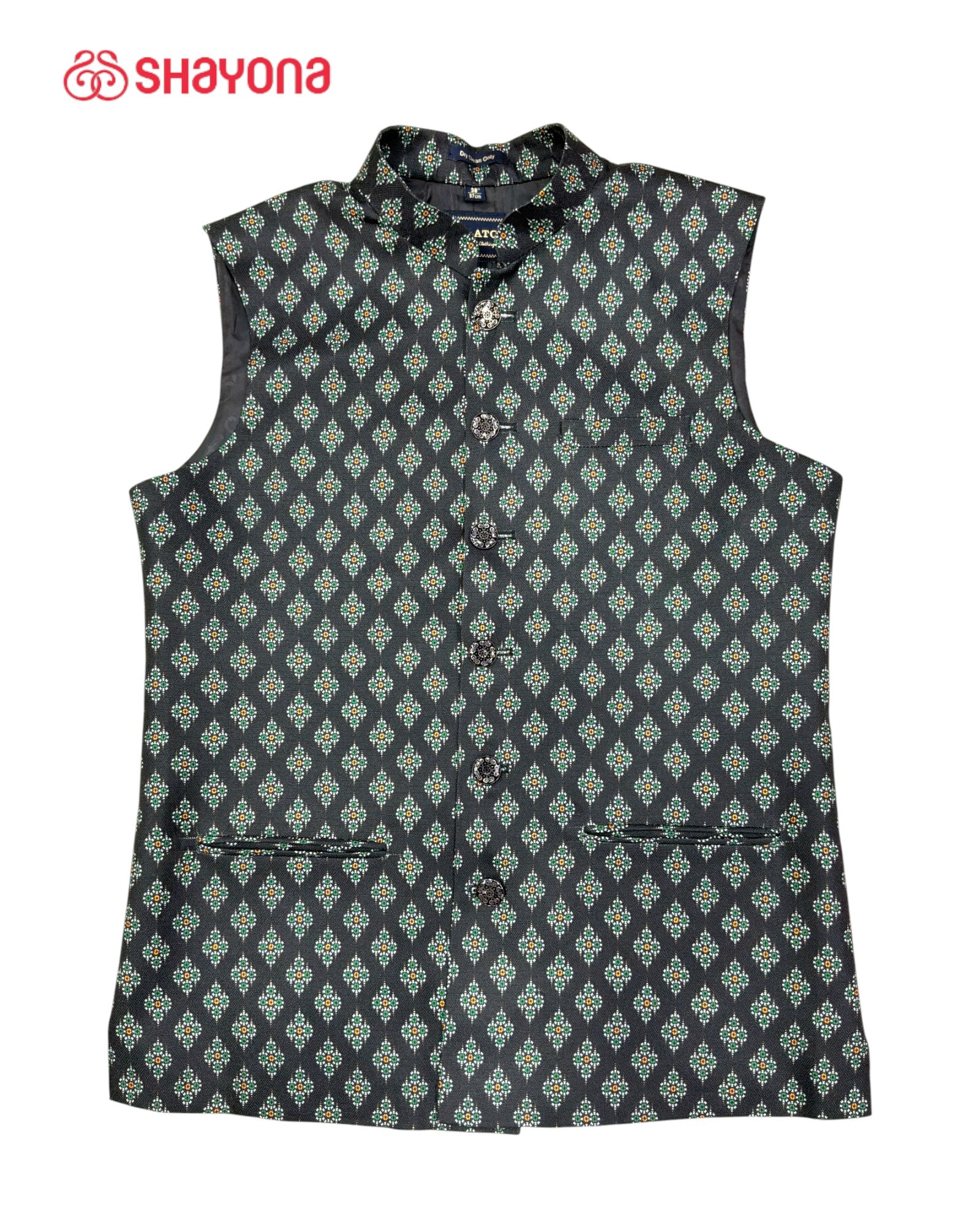 Men’s Nehru Jacket / Koti – Silk Printed Ethnic Jacket with Embroidery & Handwork