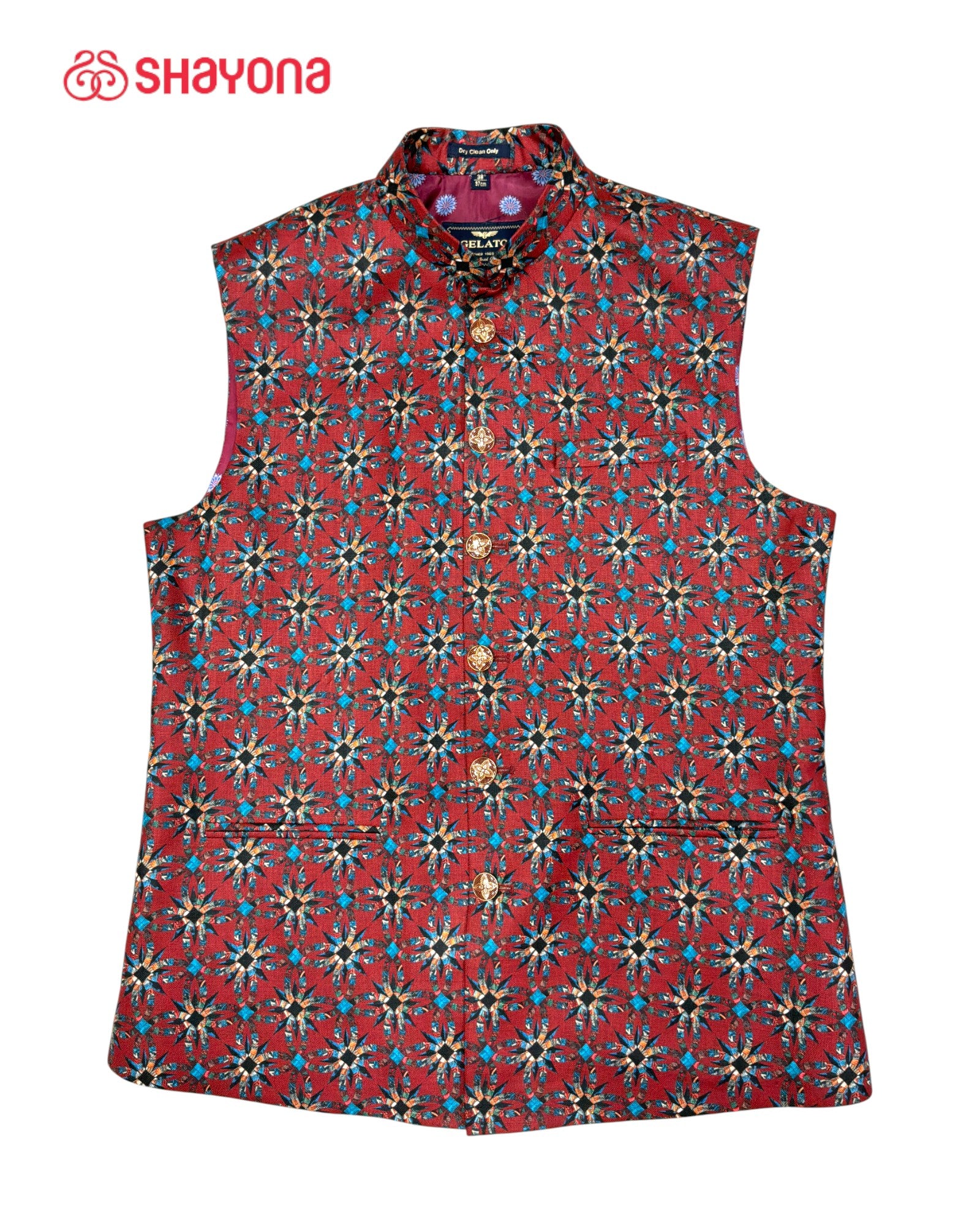 Men’s Nehru Jacket / Koti – Silk Printed Ethnic Jacket with Embroidery & Handwork