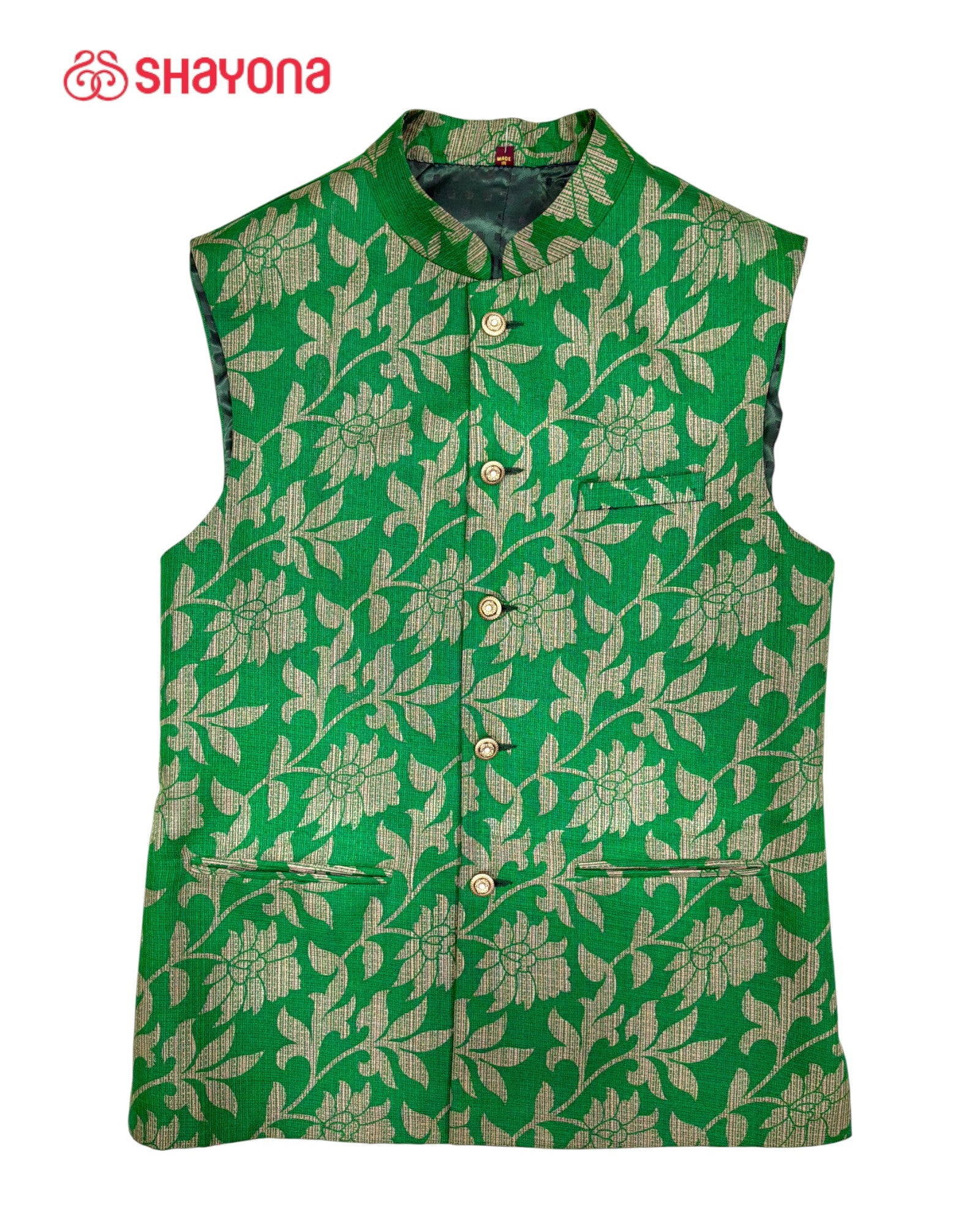 The elegant Nehru collar and tailored silhouette make it a versatile layering piece for weddings, festive occasions, cultural events, and celebrations. Pair it with kurtas, shirts, or ethnic bottoms to complete a polished traditional look.
