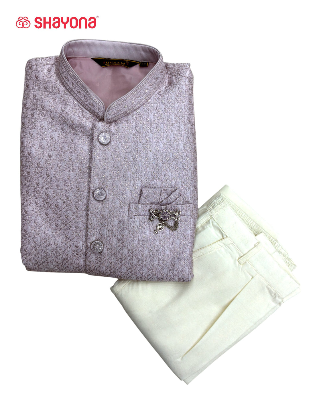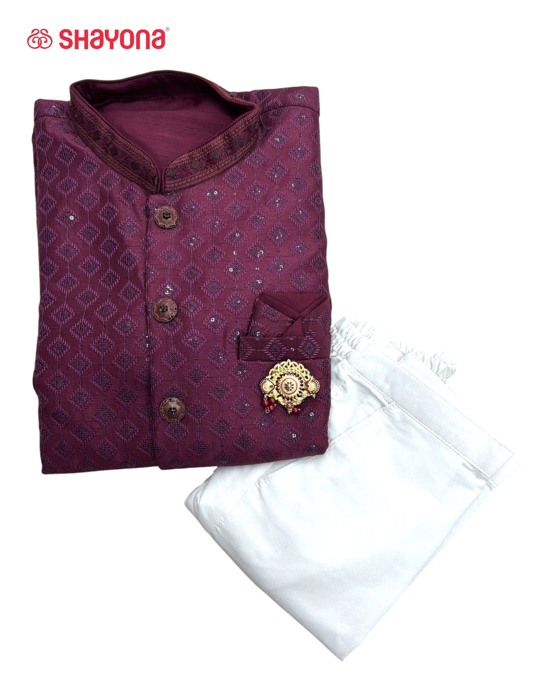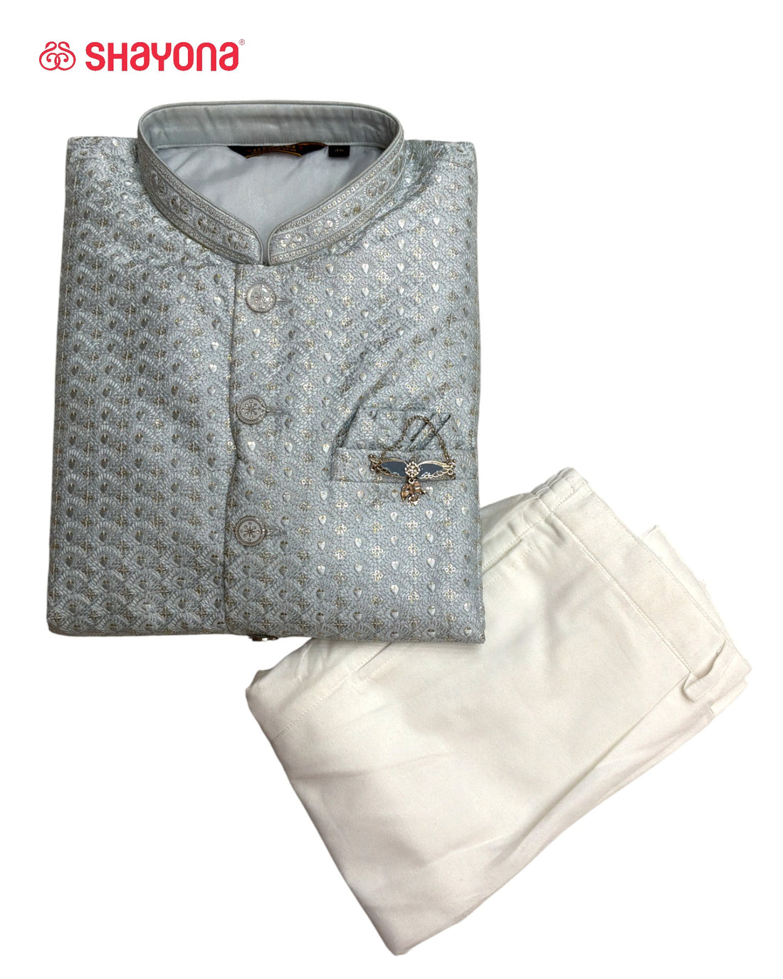 Product Name: Men’s Indo-Western Set Product Title: Premium Silk Blend Men’s Indo-Western Set with Designer...