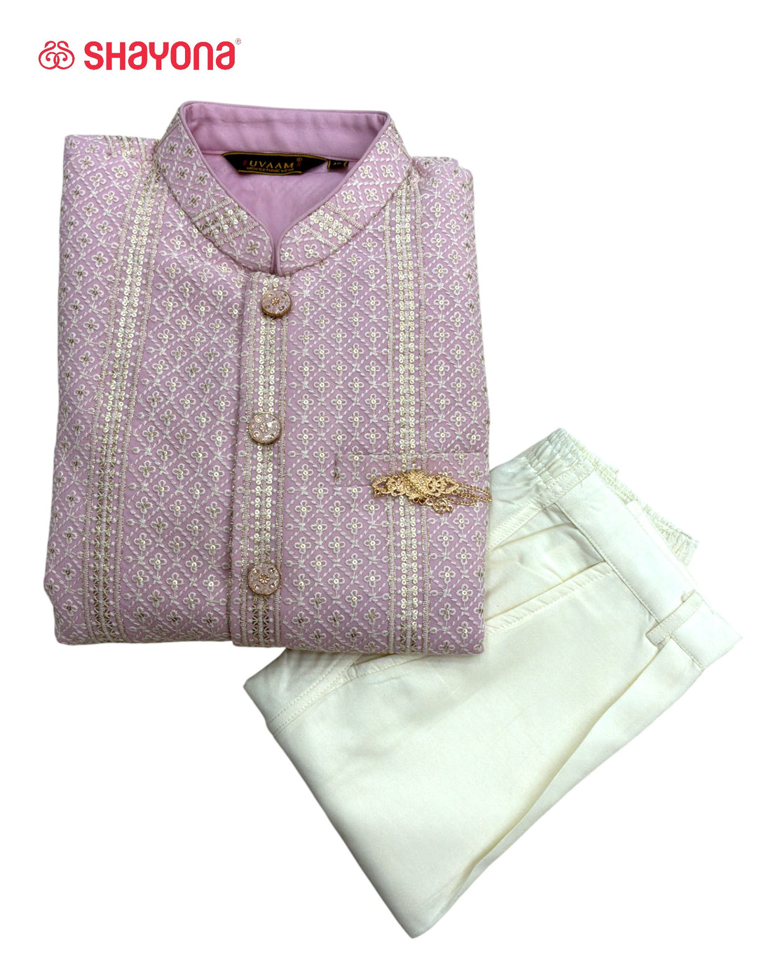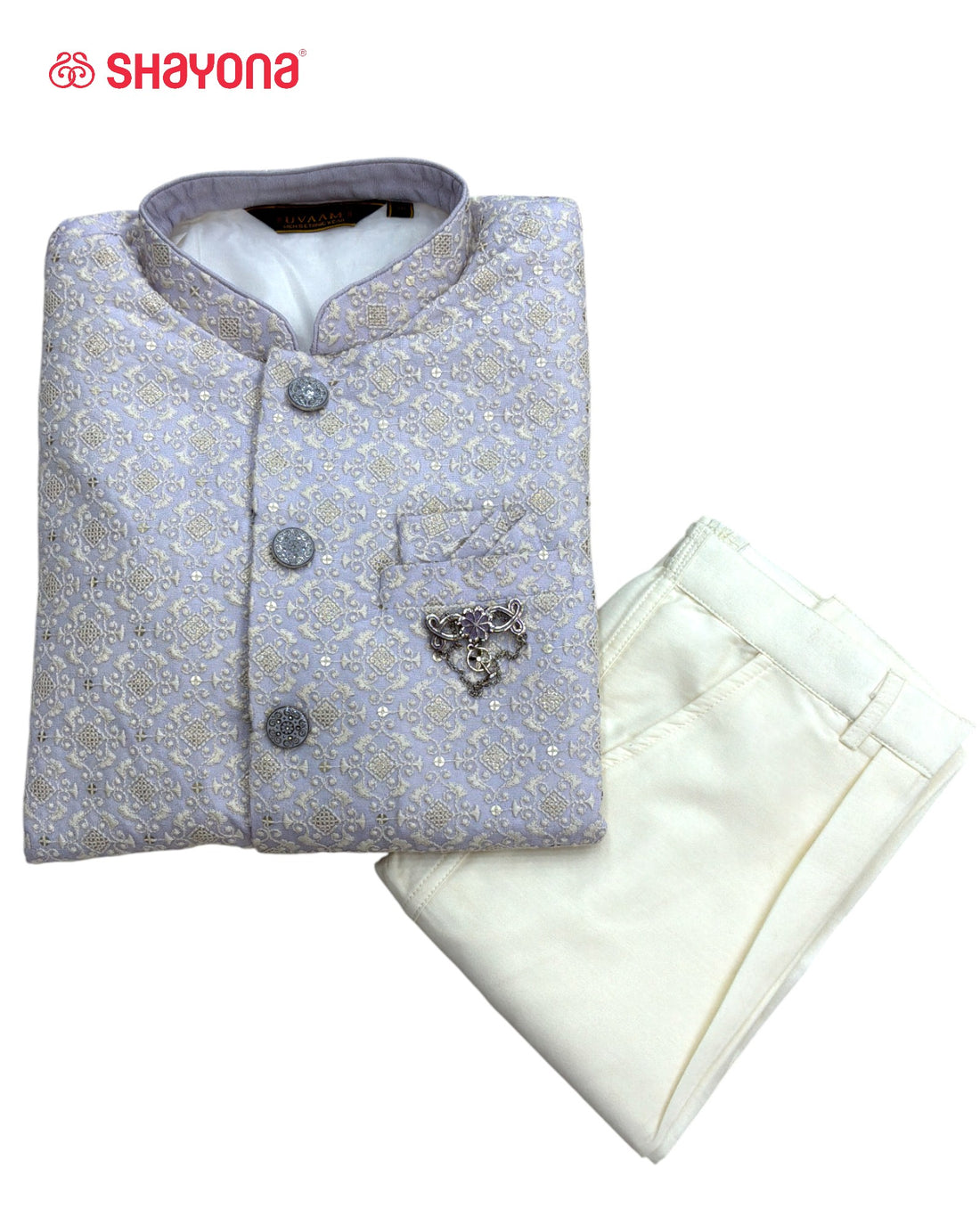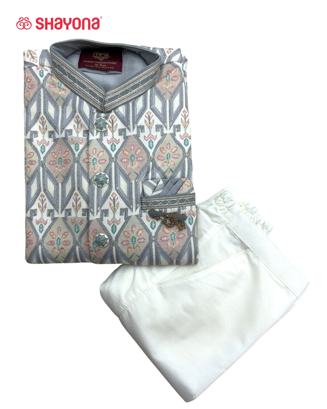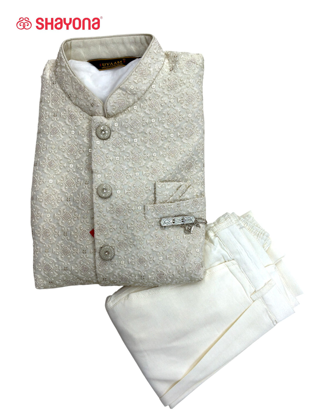 Product Name: Men’s Indo-Western Set Product Title: Premium Silk Blend Men’s Indo-Western Set with Designer...