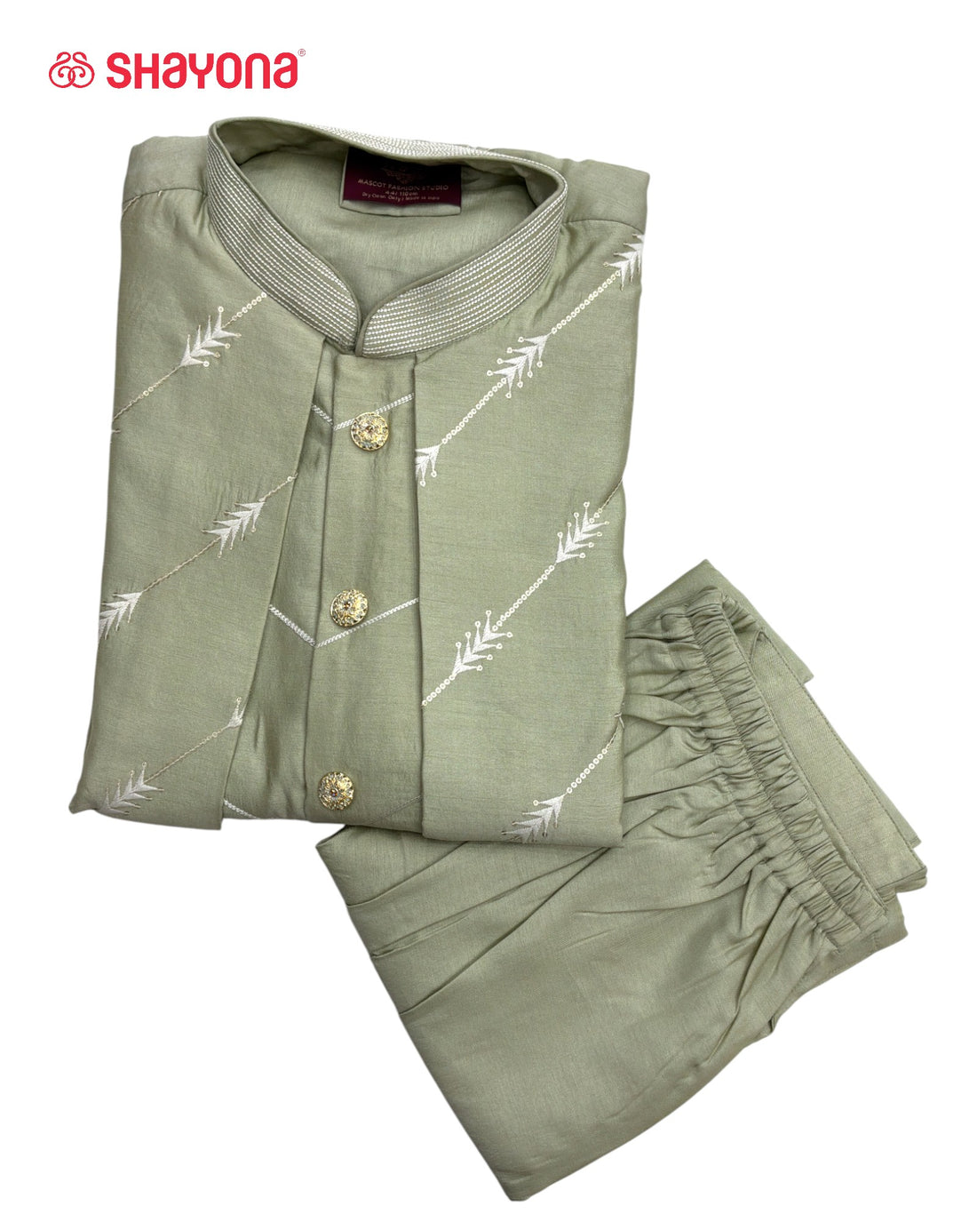 Product Caption Elevate your festive and ethnic wardrobe with Shayona’s Men’s Kurta Set, crafted in...