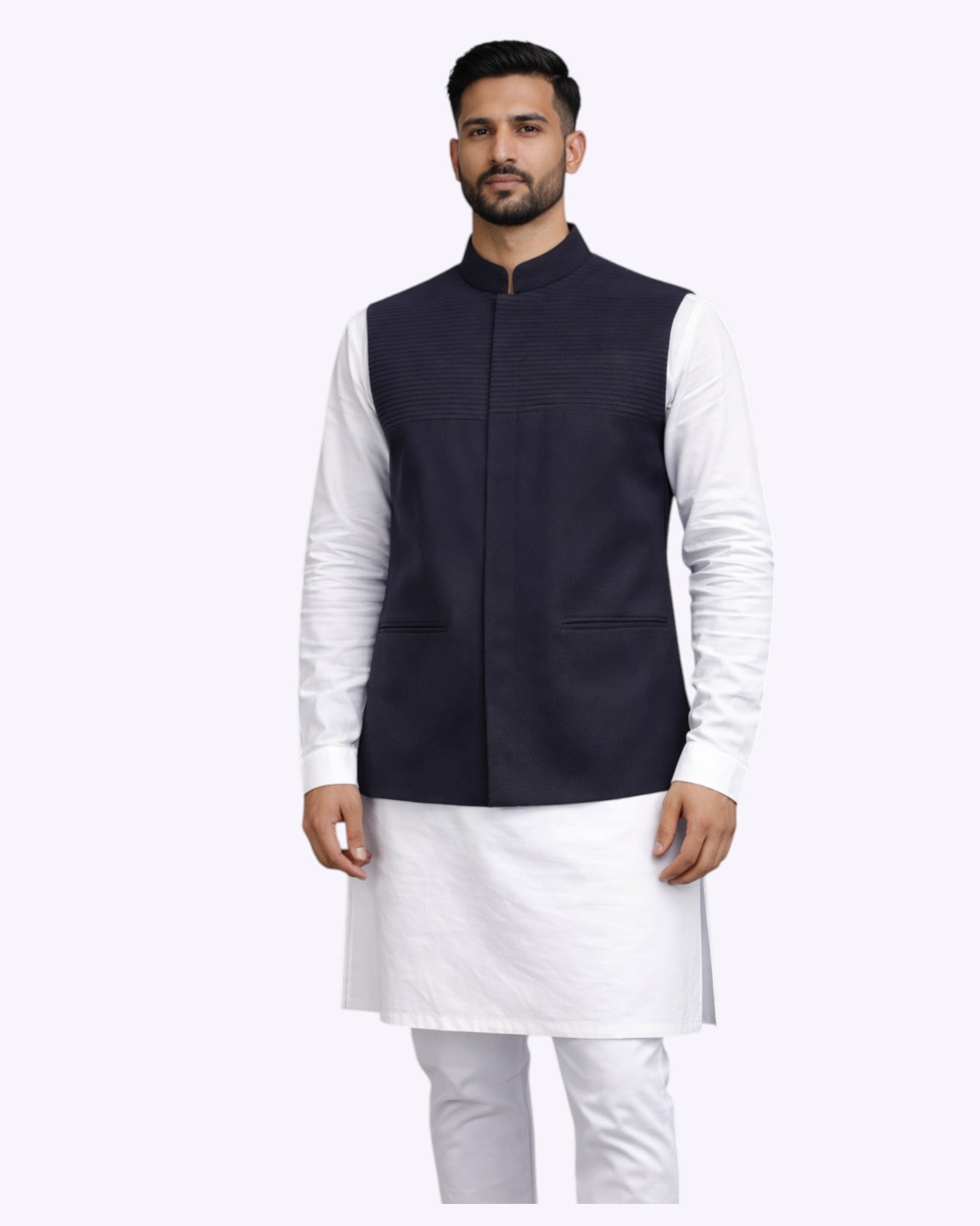 Each Nehru Jacket is carefully designed and tailored with precision craftsmanship. The process begins with premium fabric selection, followed by structured pattern cutting for a sharp silhouette. Skilled artisans stitch the garment with attention to detailing, ensuring clean finishing, strong seams, and comfortable lining.
