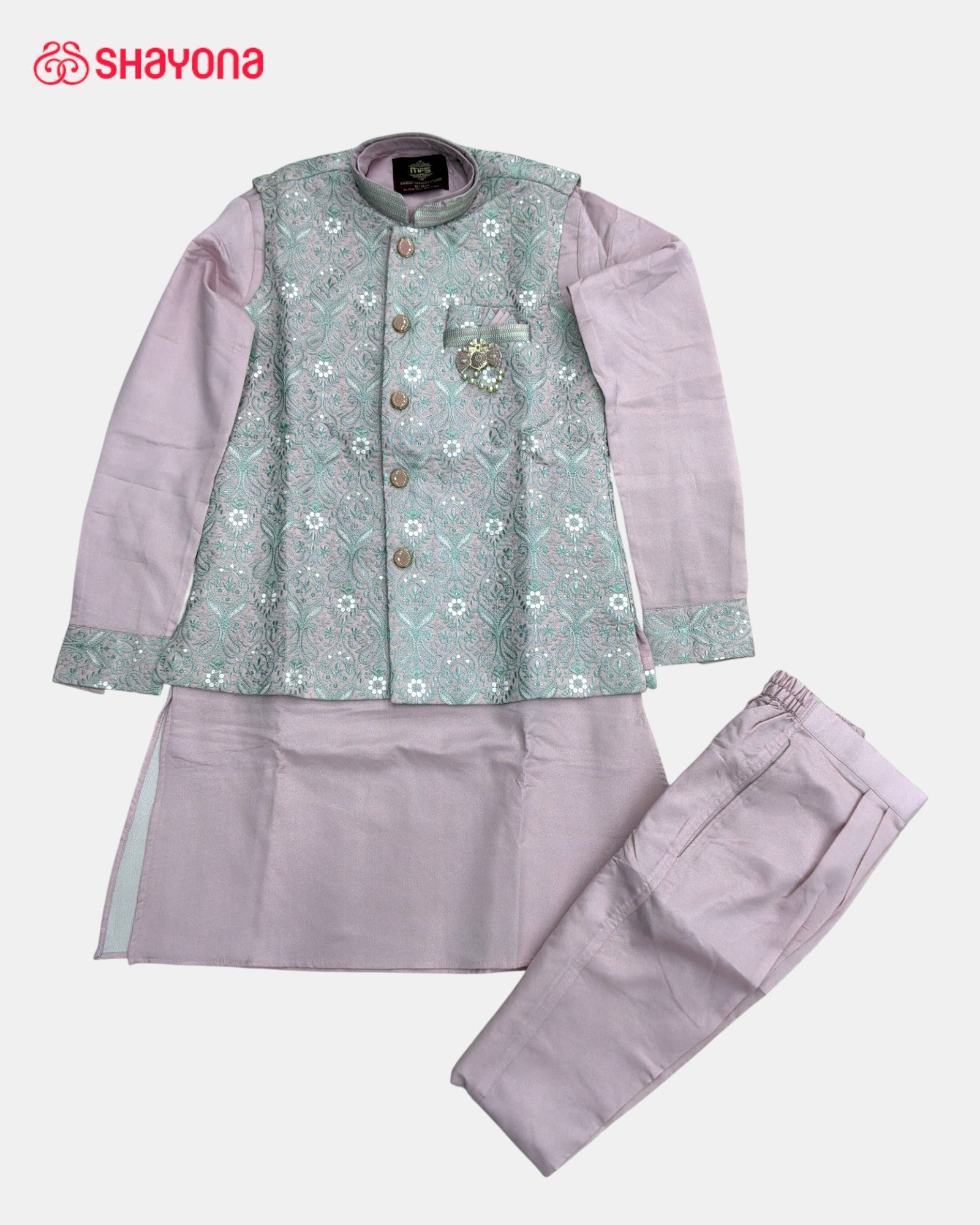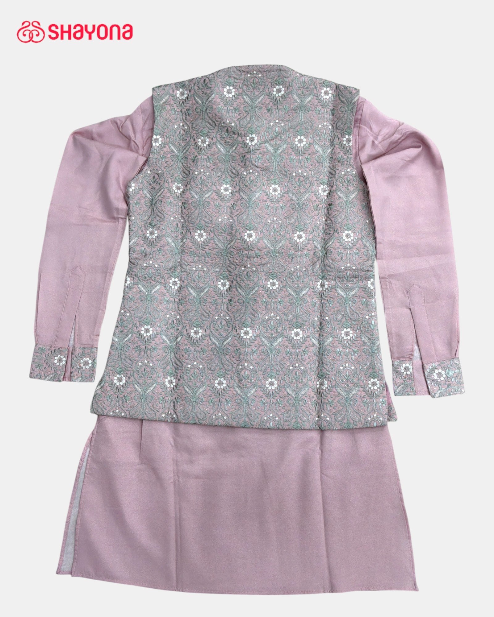 Each Men’s Koti–Kurta Set is crafted using carefully selected silk blend and jacquard fabrics known for their festive richness and elegant drape. Skilled artisans focus on precise tailoring, motif placement, and fine finishing details such as buttons, collars, and seams. The koti is structured to give a sharp silhouette, while the kurta and bottom are designed for breathable comfort — combining heritage textile artistry with modern garment construction.