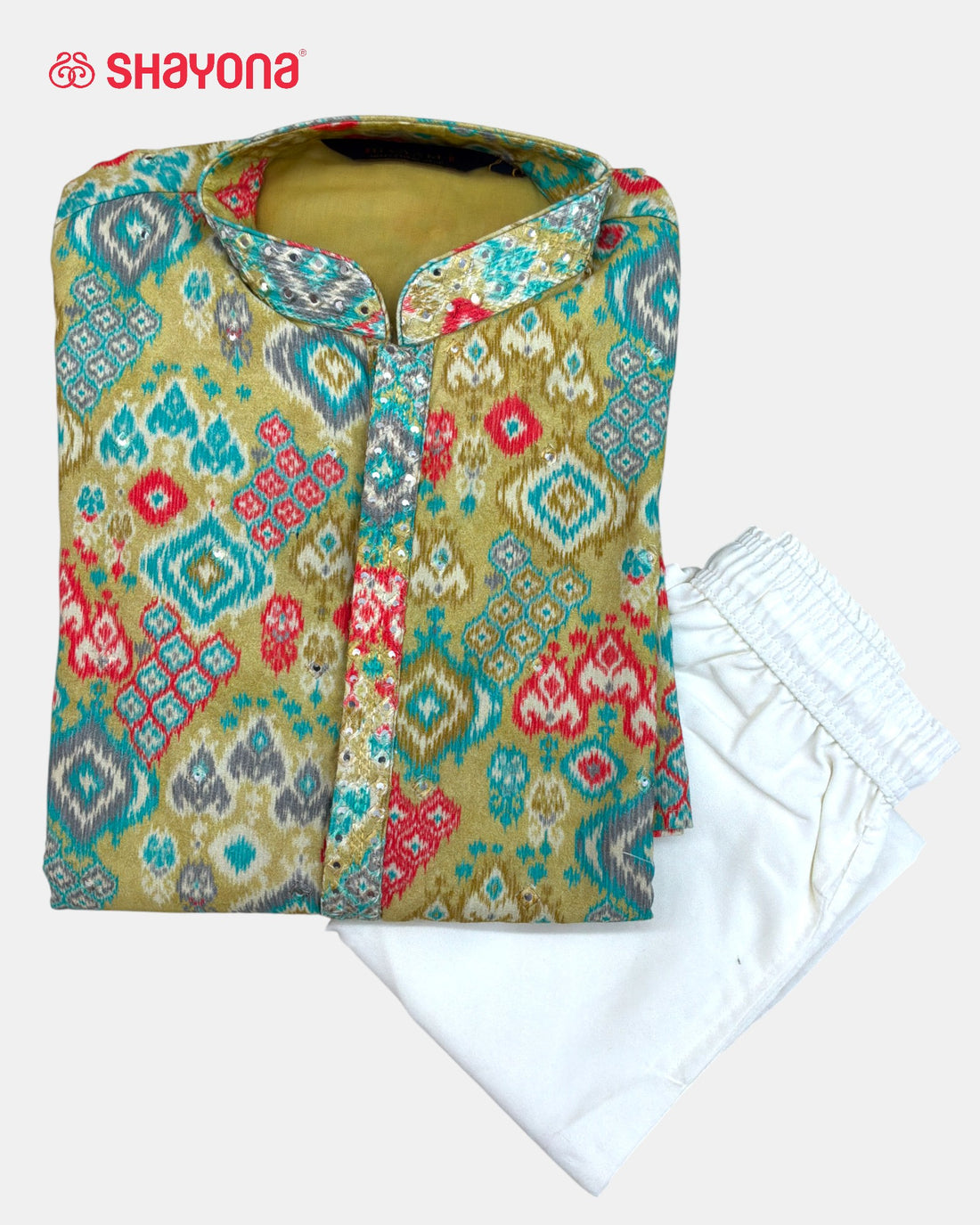 Product Caption Elevate your festive and ethnic wardrobe with Shayona’s Men’s Kurta Set, crafted in...