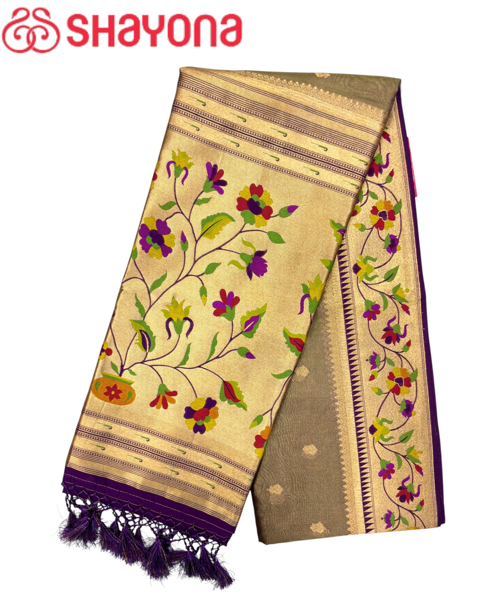 Elegant Tissue Ghicha Silk Saree – Handwoven Luxury with Floral Artistry