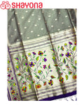 The saree features intricate woven floral motifs and borders, achieved through skilled handloom craftsmanship. Each piece reflects hours of artisan effort, making every saree unique with slight variations that enhance its authenticity and charm.