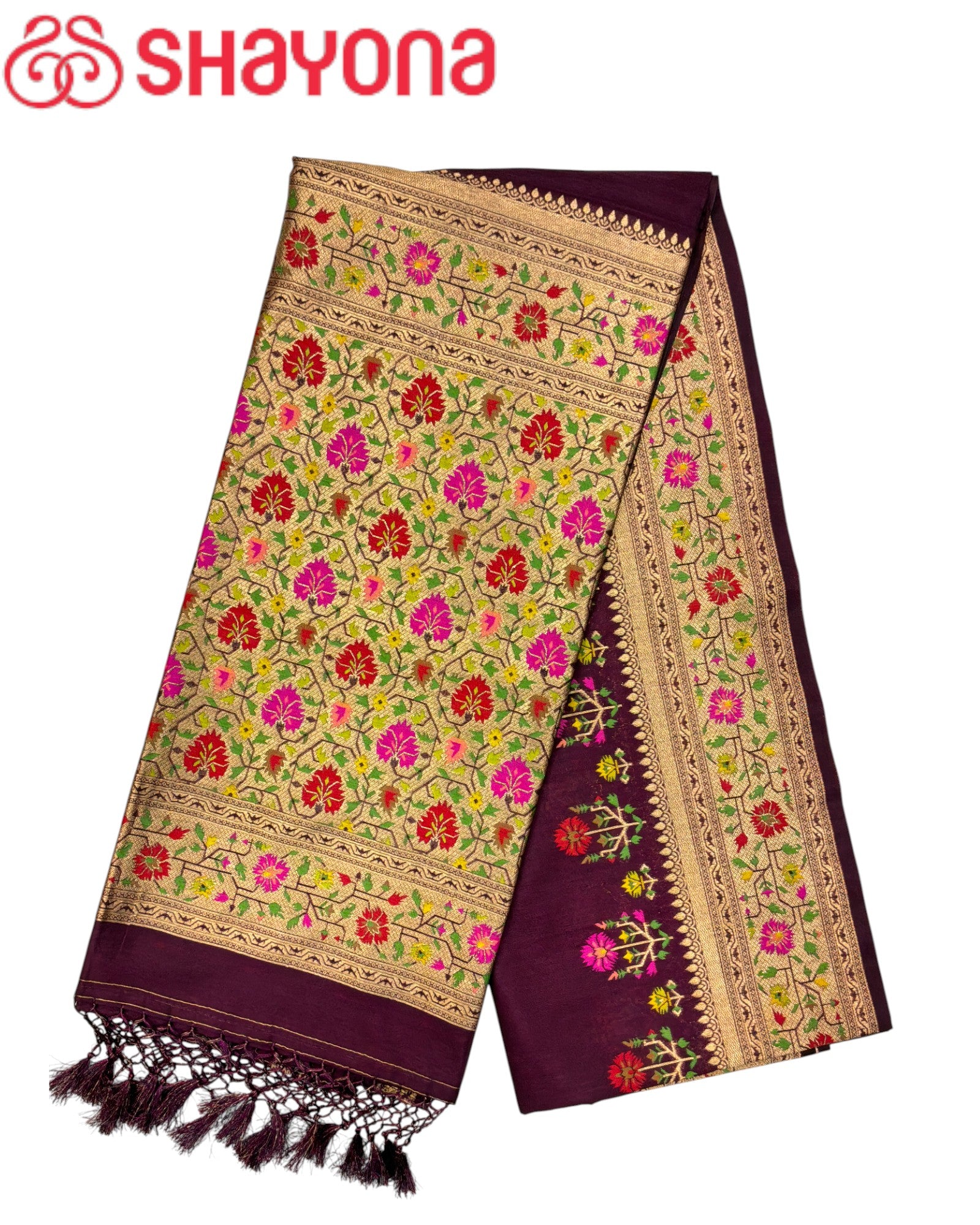 Elegant Tissue Ghicha Silk Saree – Handwoven Luxury with Floral Artistry