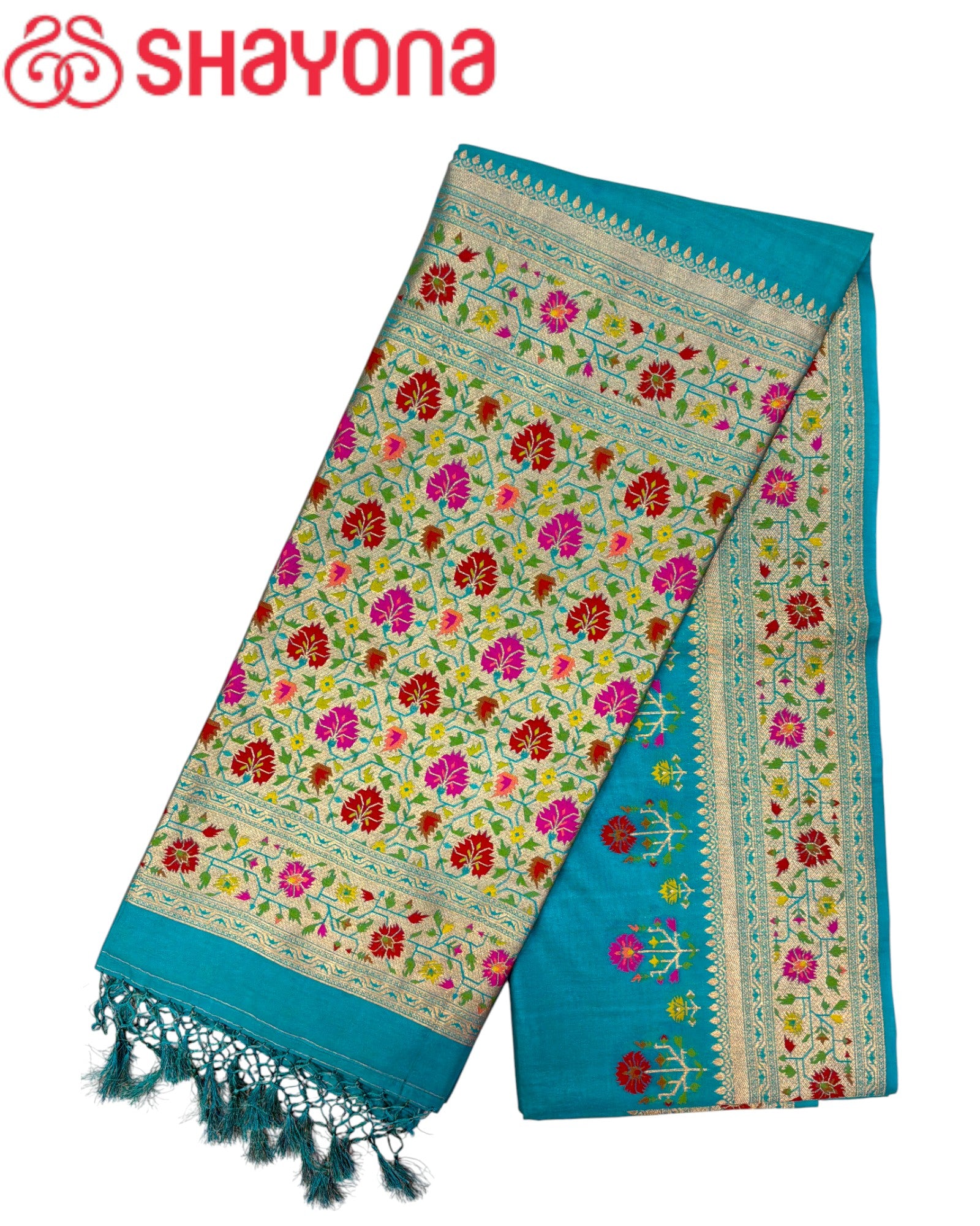 Elegant Tissue Ghicha Silk Saree – Handwoven Luxury with Floral Artistry